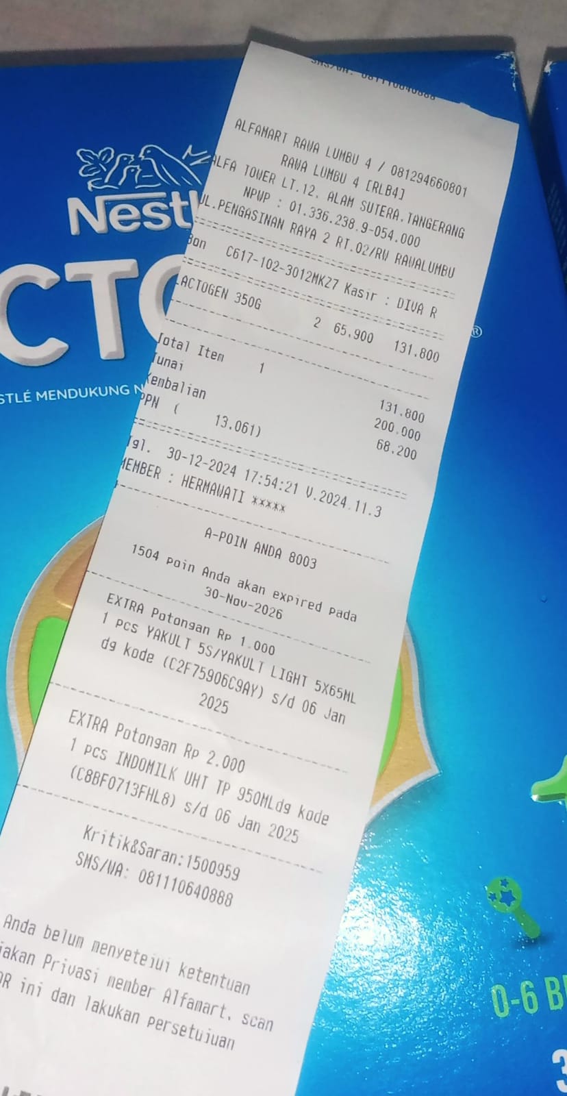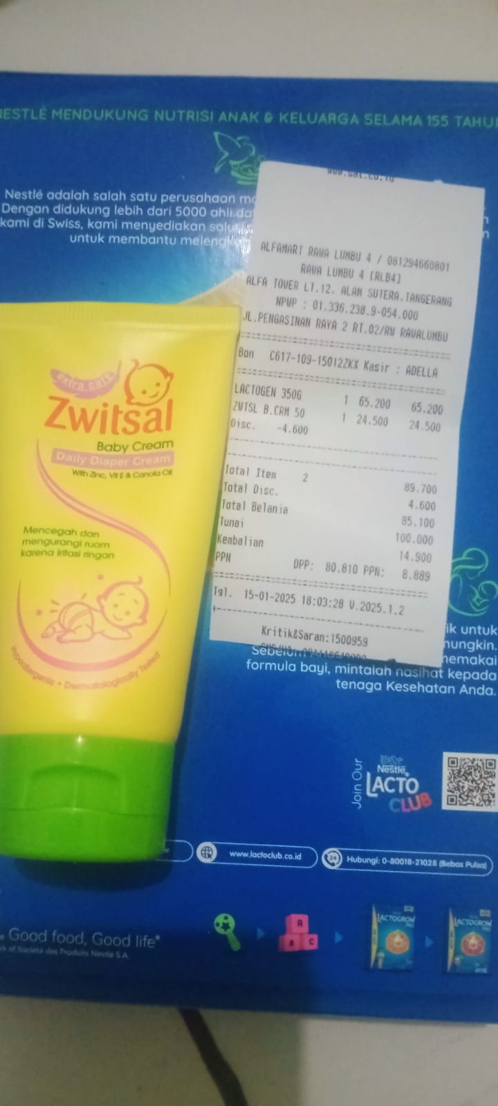 Dana bantuan dari #TemanBaik sudah saya gunakan untuk membeli obat, tisu basah, pampers, sewa tabung oksigen, minyak telon, susu dan lainnya.