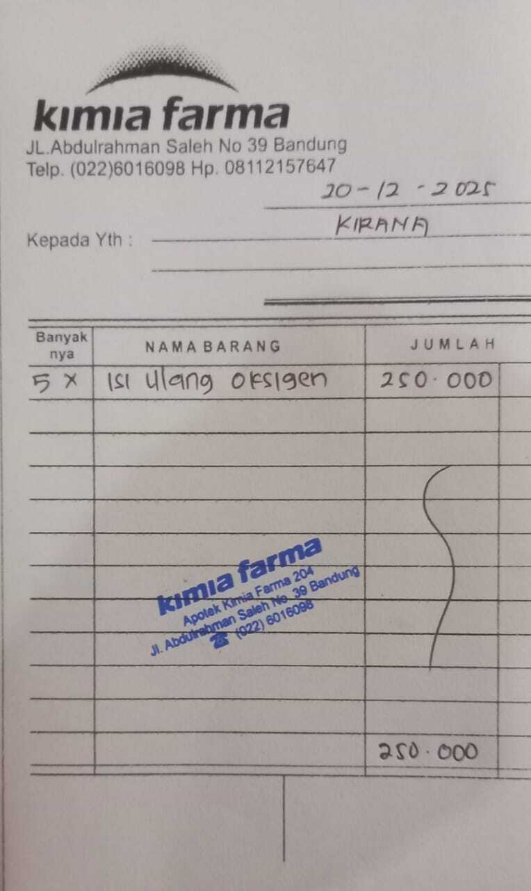 Dana digunakan untuk Pembelian isi oksigen Rp50.000 x 5 kali= Rp250.0002025-12-22 17:33:58