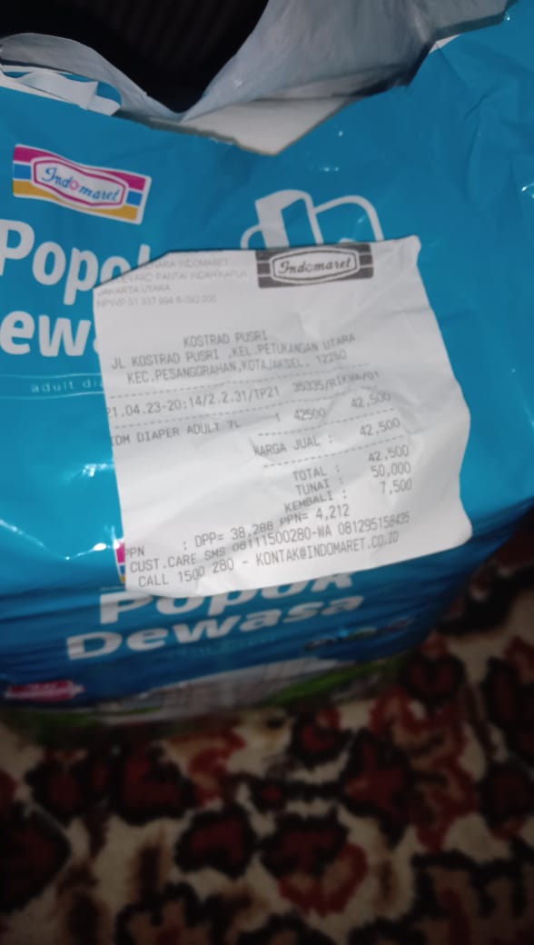 Dana digunakan untuk pembelian pampers dewasa.2023-12-19 17:34:18