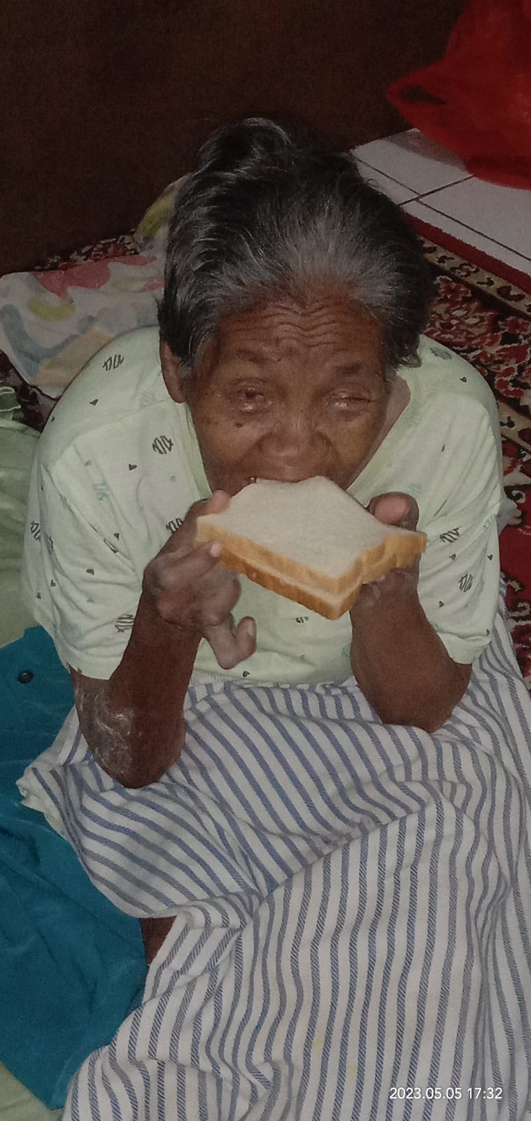 Izinkan aku mengabarkan kondisi Bu Sulina, ibuku ya. Alhamdulillah hari ini aku dapat rezeki, jadi aku belikan ibu popok 2 pack. Aku juga kasih makan yang enak untuk ibuku supaya dia senang. Pokoknya yang utama ibu dulu baru selajutnya anak-anaknya.