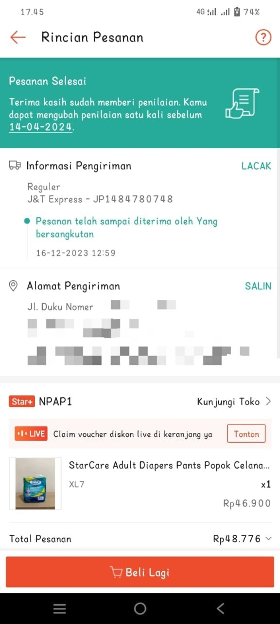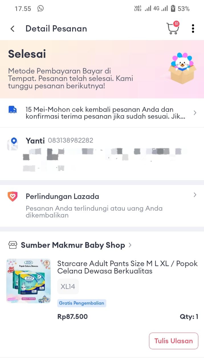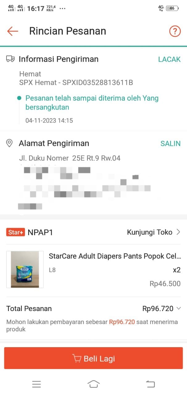 Dana digunakan untuk membeli Pempers merk starcare adults isi XL 7 Rp58.0962024-02-19 17:43:48
