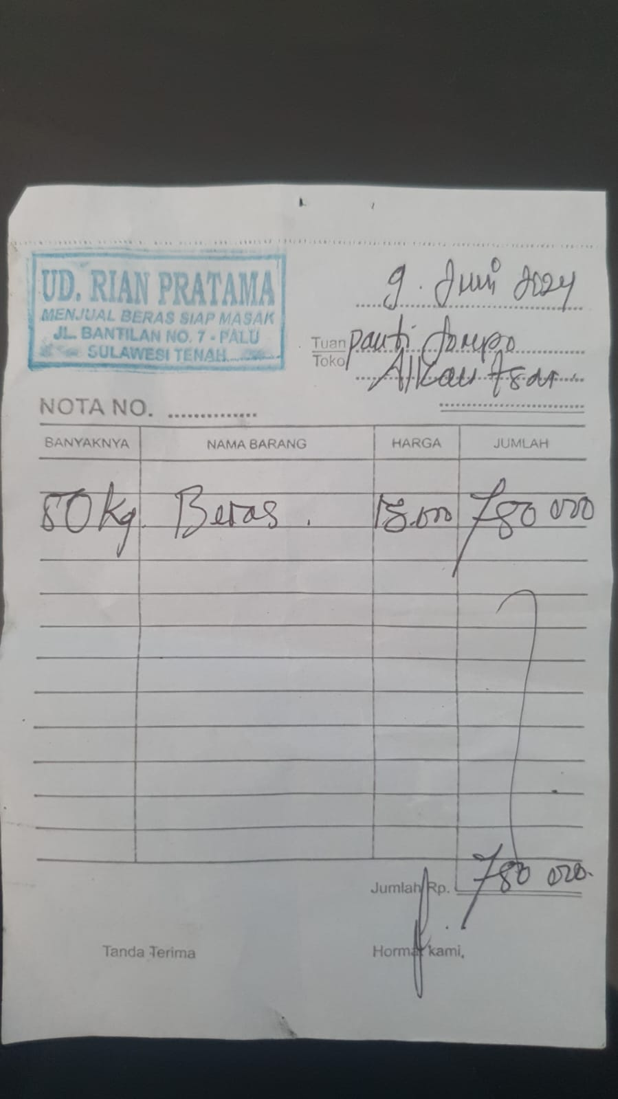 Dana digunakan untuk Beras 50kg x Rp15.000 = Rp750.000 Lauk-pauk Rp 250.0002024-06-07 16:52:14
