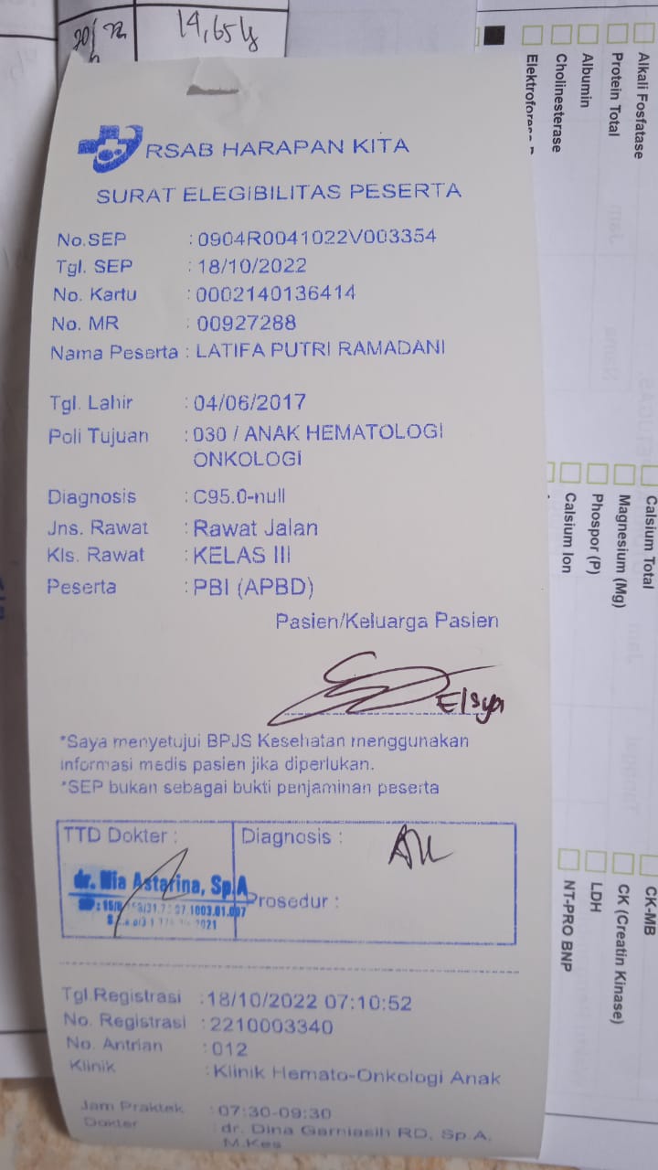 Halo kakak-kakak, om, dan tante, aku Latifa yang sedang berjuang karena didiagnosa dokter dengan kanker darah. Aku pernah dibantu oleh semua di sini, semoga masih ingat denganku ya.
