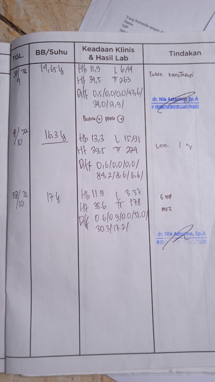 Kami mau mengabarkan kondisi Latifa yang sebelumnya sudah menjalani kemoterapi dan sempat dirawat di RS karena harus transfusi darah terlebih dahulu.