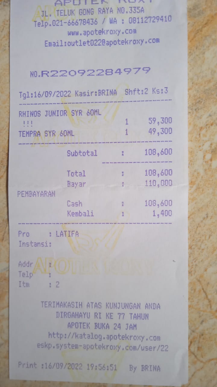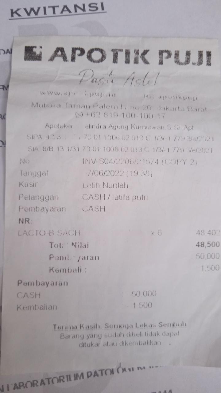 Donasi dari TemanBaik juga sudah digunakan dengan baik untuk membeli susu dan obat untuk Latifa. Terima kasih ya TemanBaik sudah membantu.