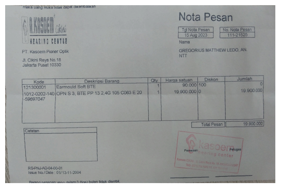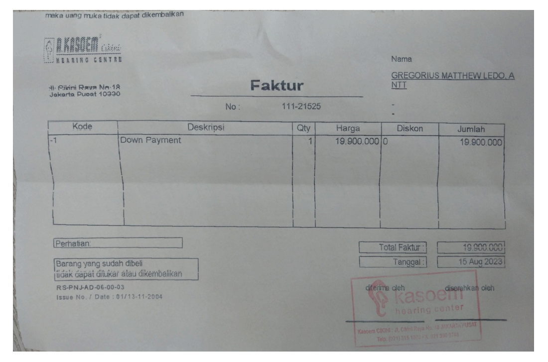 Dana digunakan untuk pembelian alat bantu dengar untuk telinga sebelah kiri seharga Rp19.900.000.2023-08-14 16:09:01