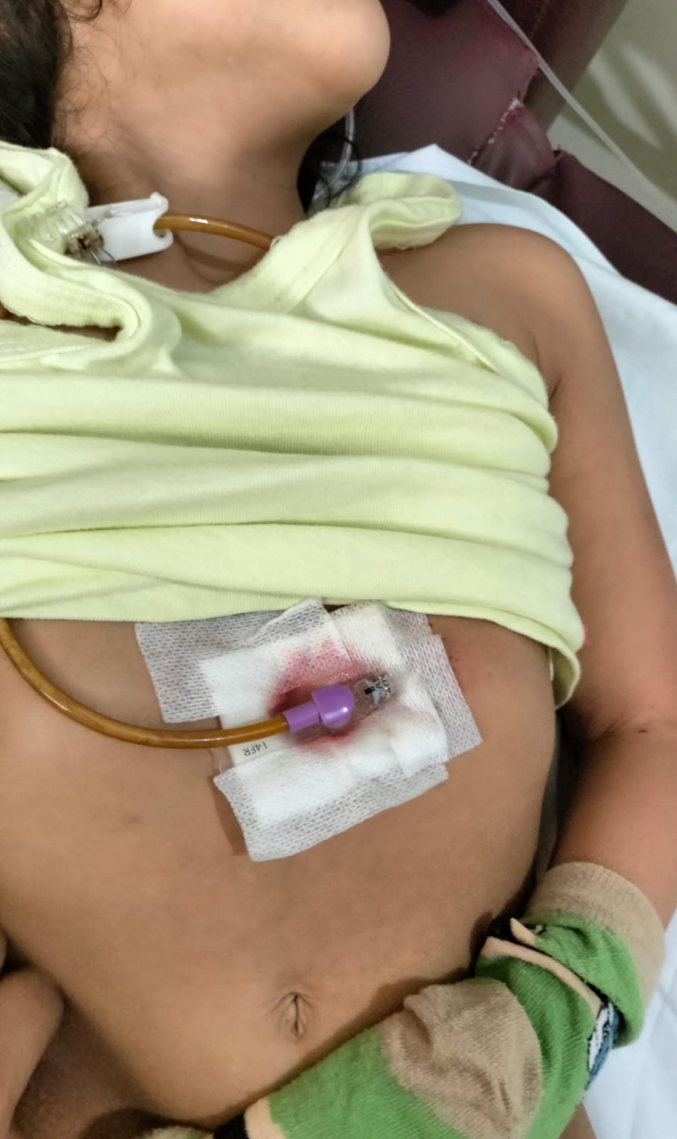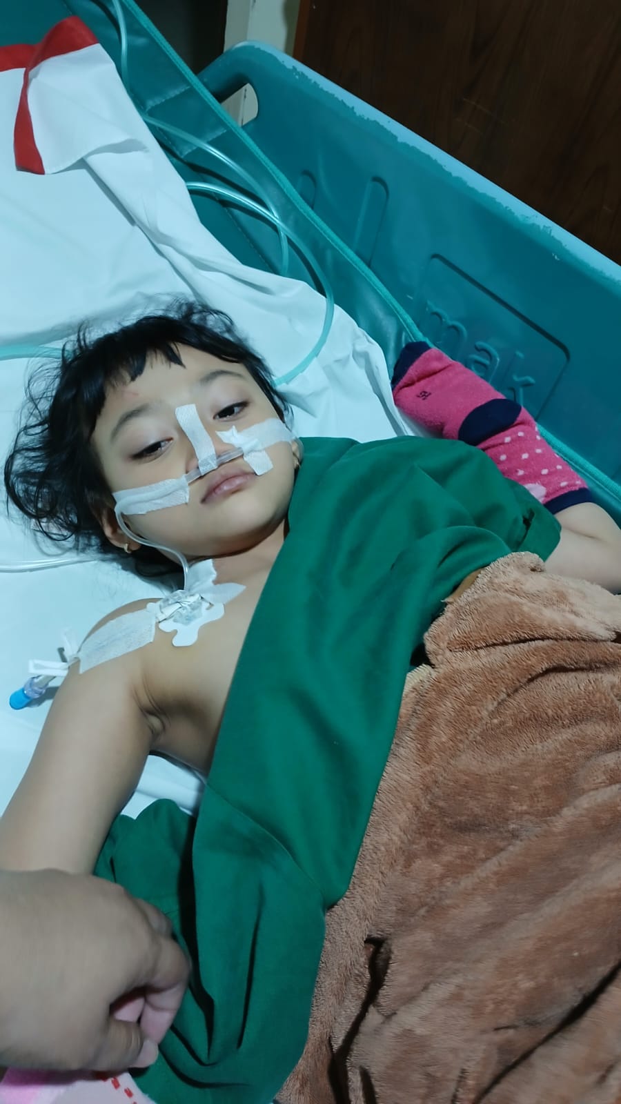 Meski sudah menjalani serangkaian pengobatan, Ia masih sering muntah dan gelisah. Ia juga belum bisa duduk mandiri, makan melalui mulut dan belum bisa beraktivitas sesuai dengan anak seusianya.