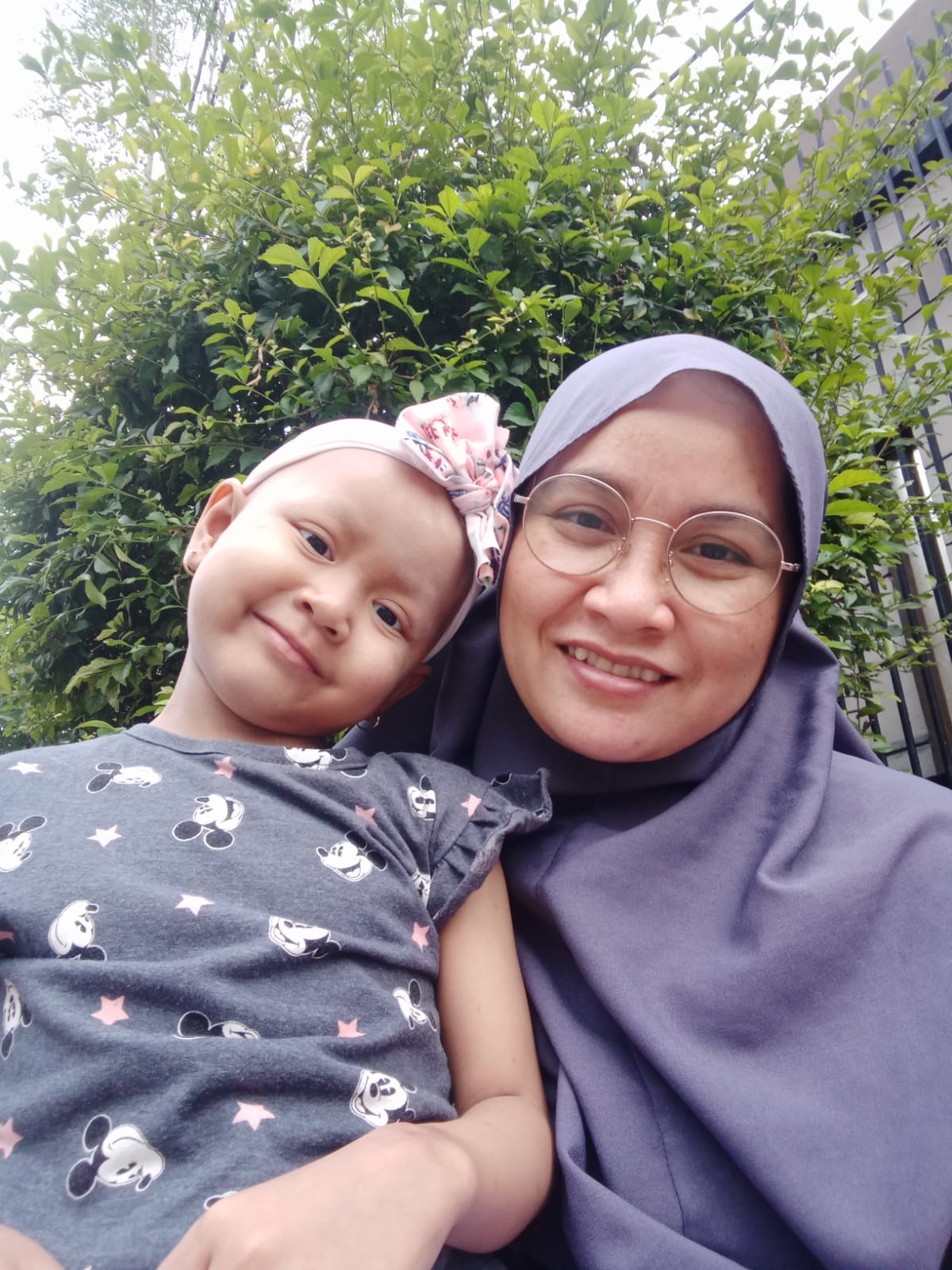 Kami berasal dari Sambas, Kalimatnya Barat. Sudah 11 bulan lamanya, aku dan anakku berada di Jakarta untuk berobat di RS Kanker Dharmais. Sudah lebih dari 30 kali juga kemoterapi yang dilalui oleh anakku.