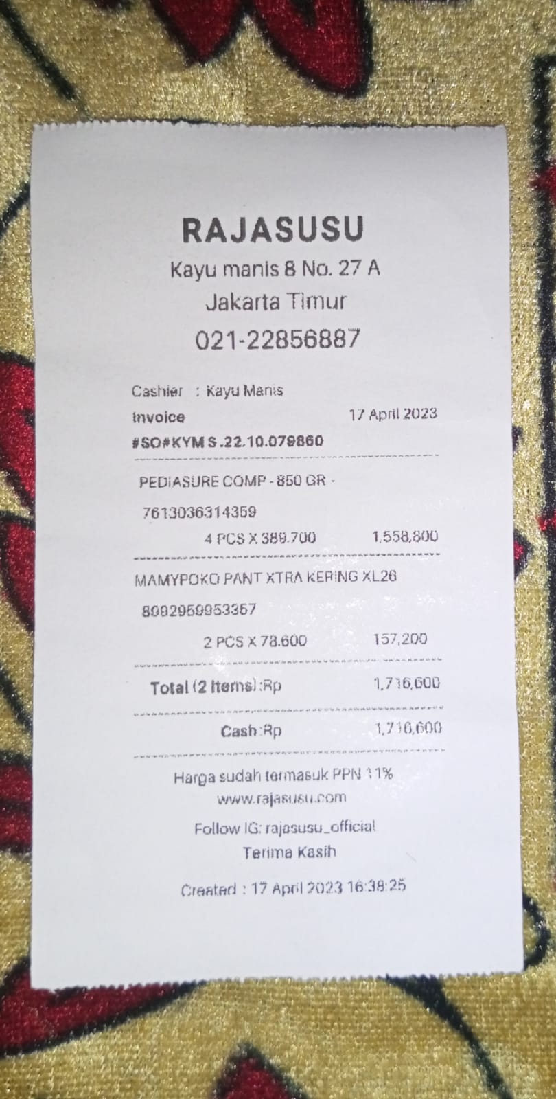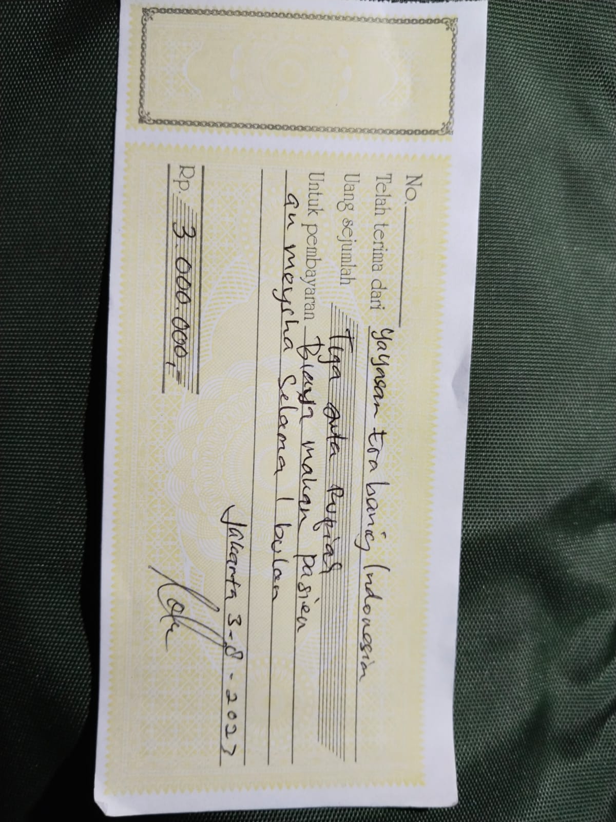 Oiya, untuk pembelian obat kemo kami ganti ke susu dan pampers, karena obat Tracetate yang botol sudah didapatkan dari orang tua pasien di RS Dharmais.