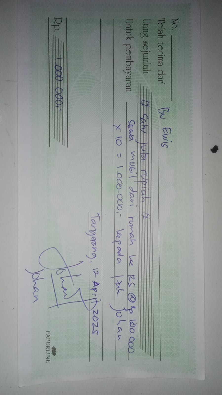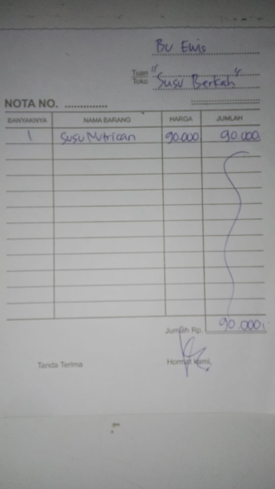 Dana digunakan untuk 1. Sewa mobil ke RSUD pp Rp100.000 x 10 kali = Rp1.000.000 2. Susu Nutrican Rp90.000