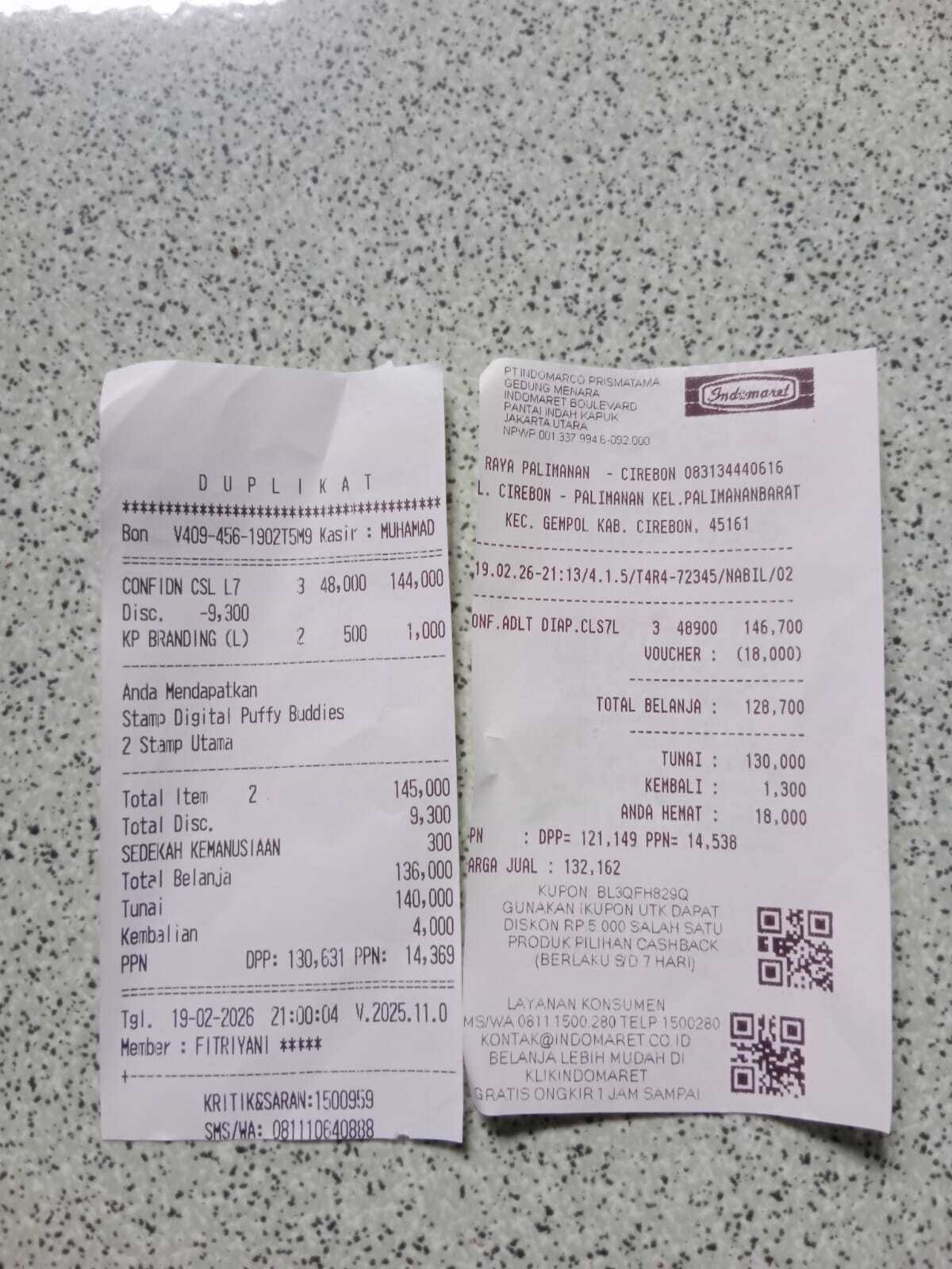 Dana digunakan untuk 1. Transportasi travel bandung cirebon Rp230.000 2. Pampers Rp49.000 x 5 = Rp245.000 3. Obat luka bionect krim Rp160.000 4. Biaya konsumsi Rp865.0002025-07-31 09:47:55