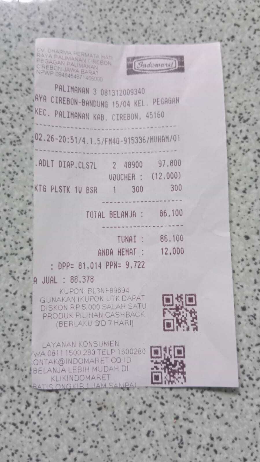 Dana digunakan untuk 1. Pampers dewasa 10 x Rp49.000 = Rp490.000 2. Tissu kering Rp50.000 3. Tissu basah Rp50.000 4. Buah Rp200.0002026-01-20 13:44:47