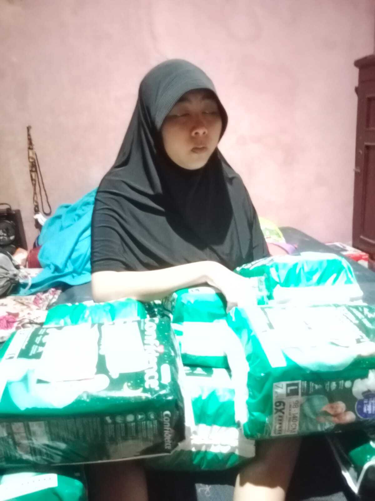 Dana bantuan dari #TemanBaik digunakan untuk pembelian pampers dewasa.