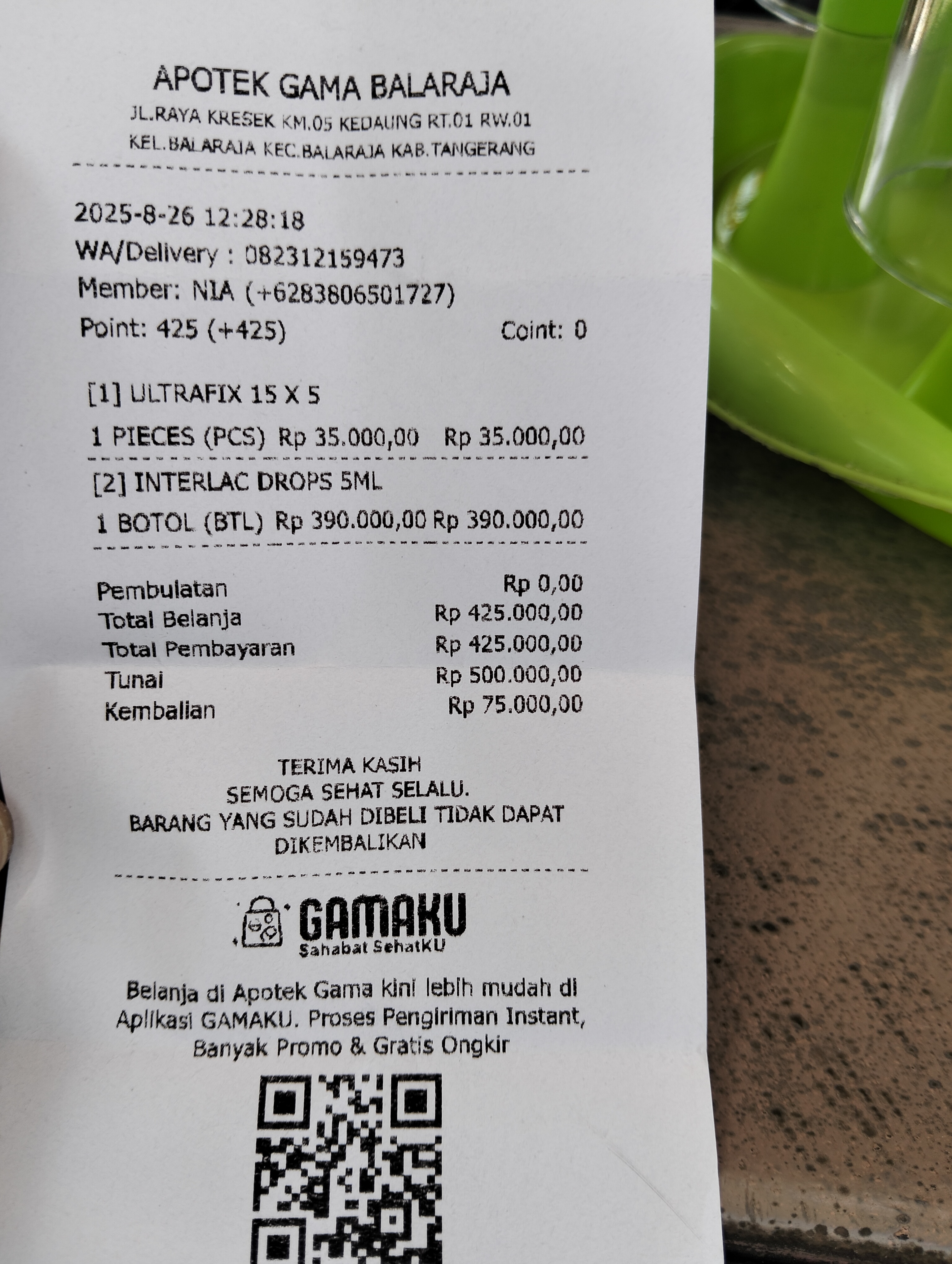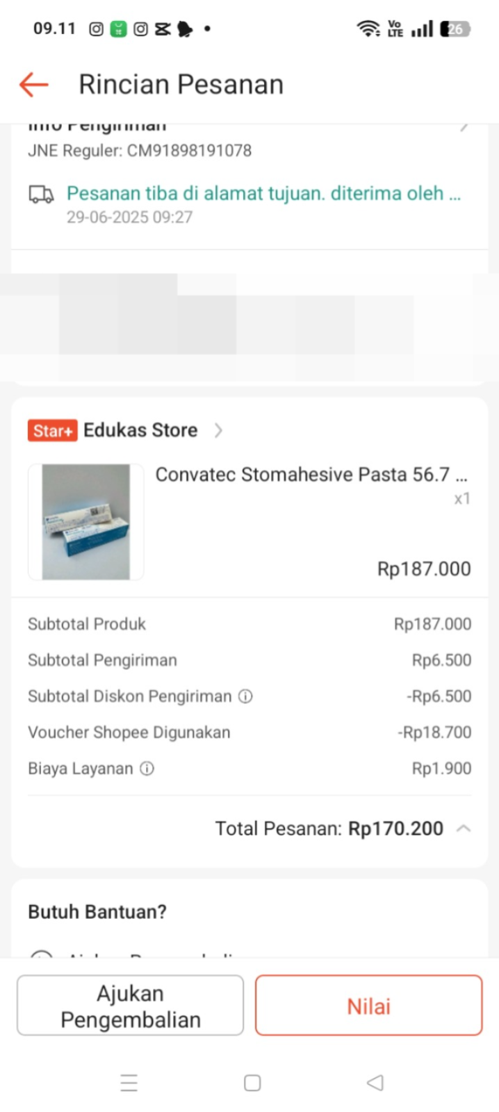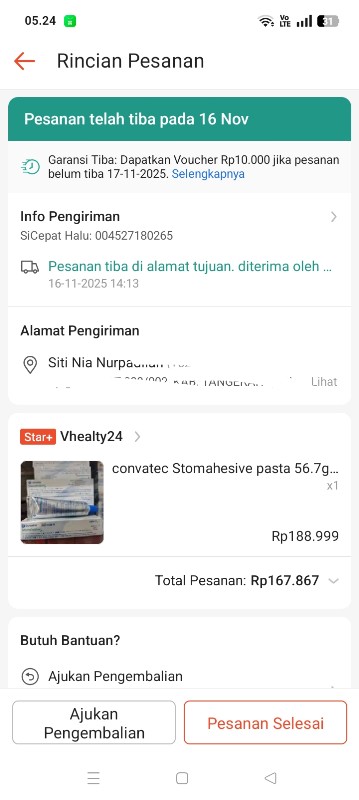 Dana digunakan untuk 1. Kantong Stoma Rp136.000 x 2 = Rp272.000 2. Lem Stomahesive Rp172.000 3. Pampers sweety Rp50.000 x 2 = Rp100.000 4. Lem perekat Ultrafix Rp35.000 5. Interlac probiotik drops Rp350.0002025-08-27 10:59:57