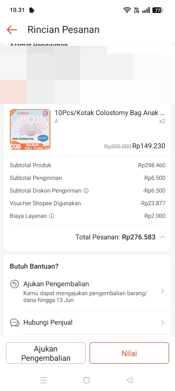 Dana digunakan untuk 1. Susu Morinaga chilmil soya Rp144.000 x 4 = Rp576.000 2. Pampers Rp50.000 x 2 ball= Rp100.000 3. Lem Stomahesive Rp200.000 4. Kantong stoma Rp136.000 5. Lem perekat Rp43.0002025-09-15 09:18:30