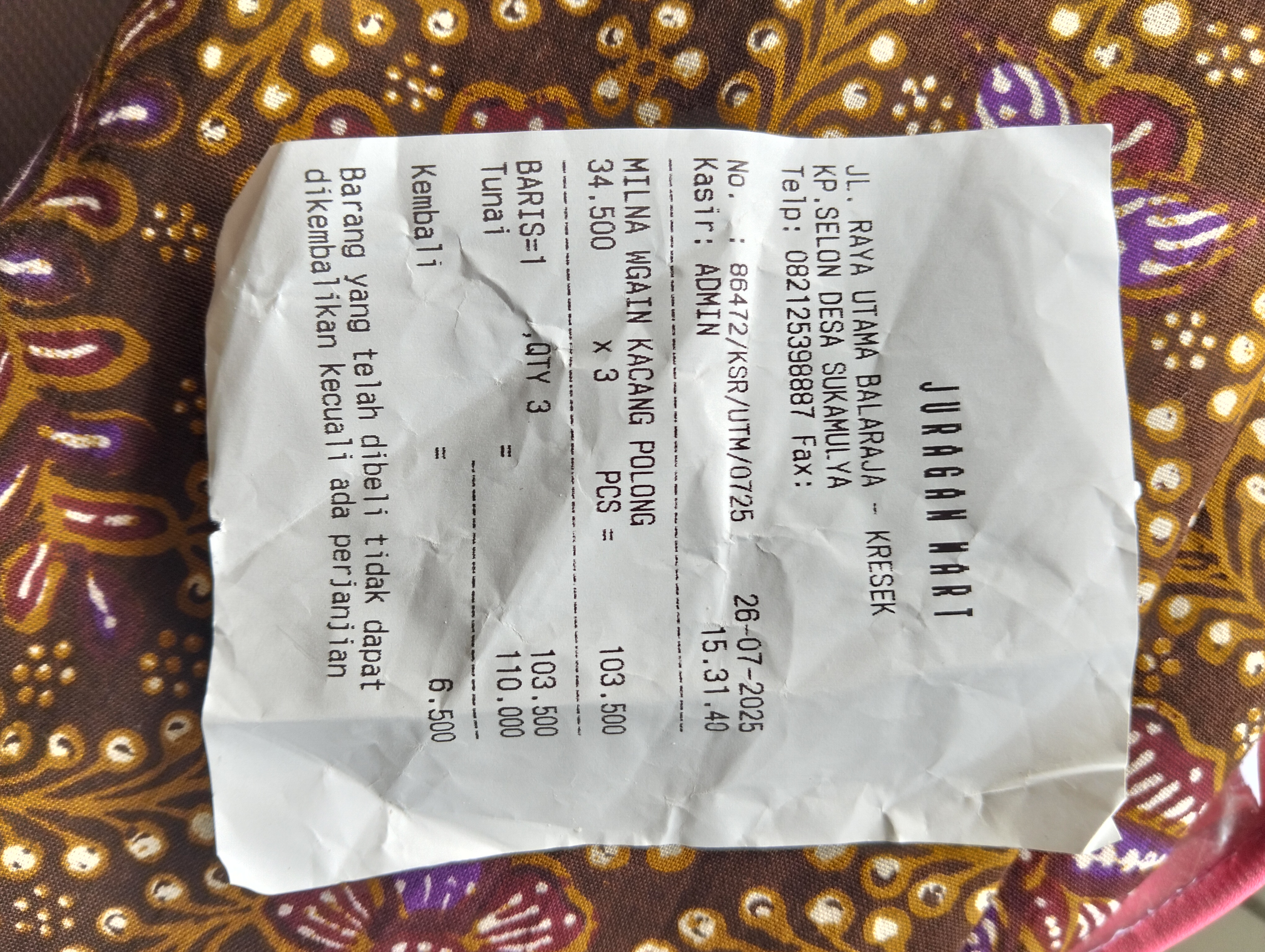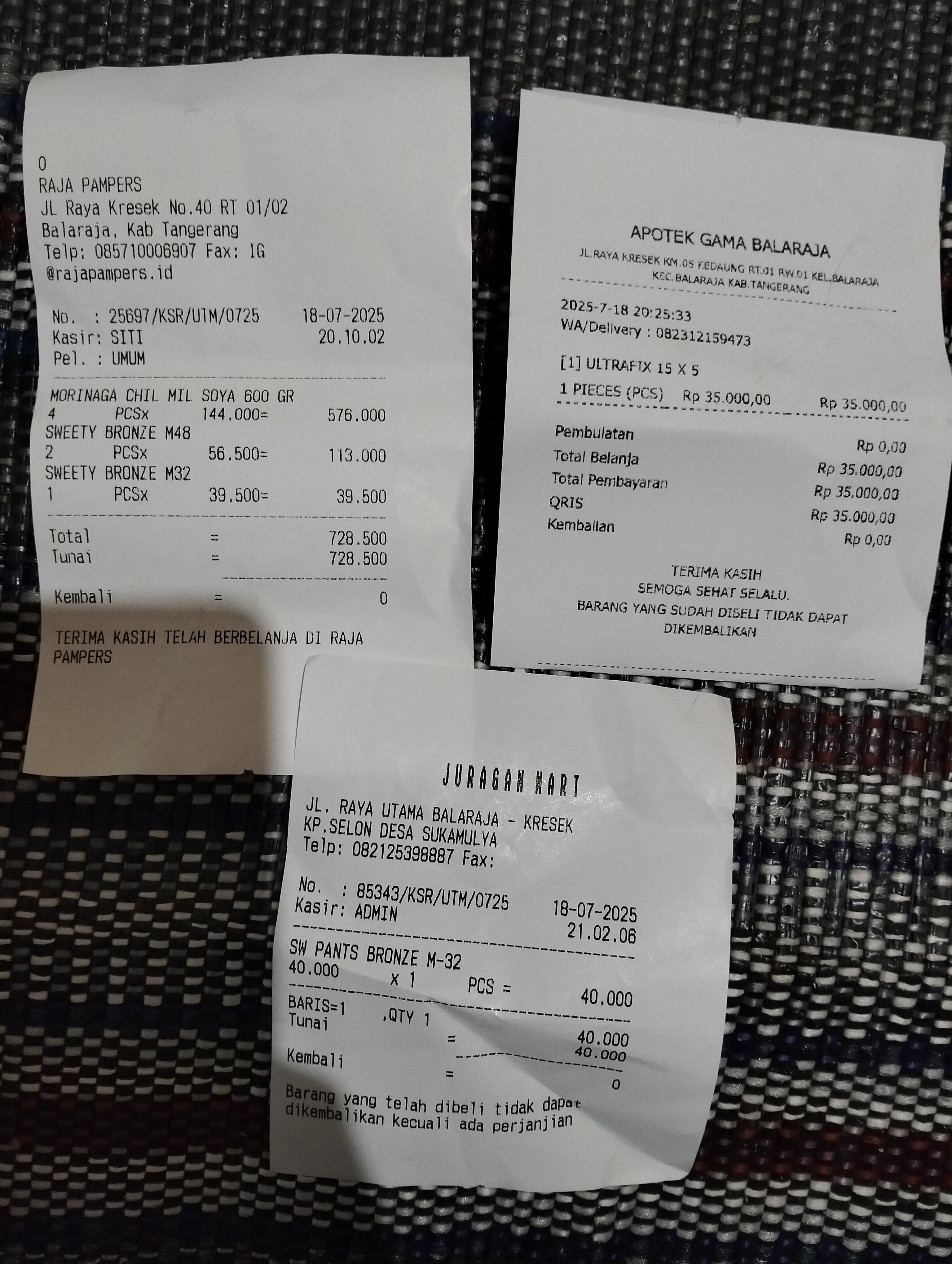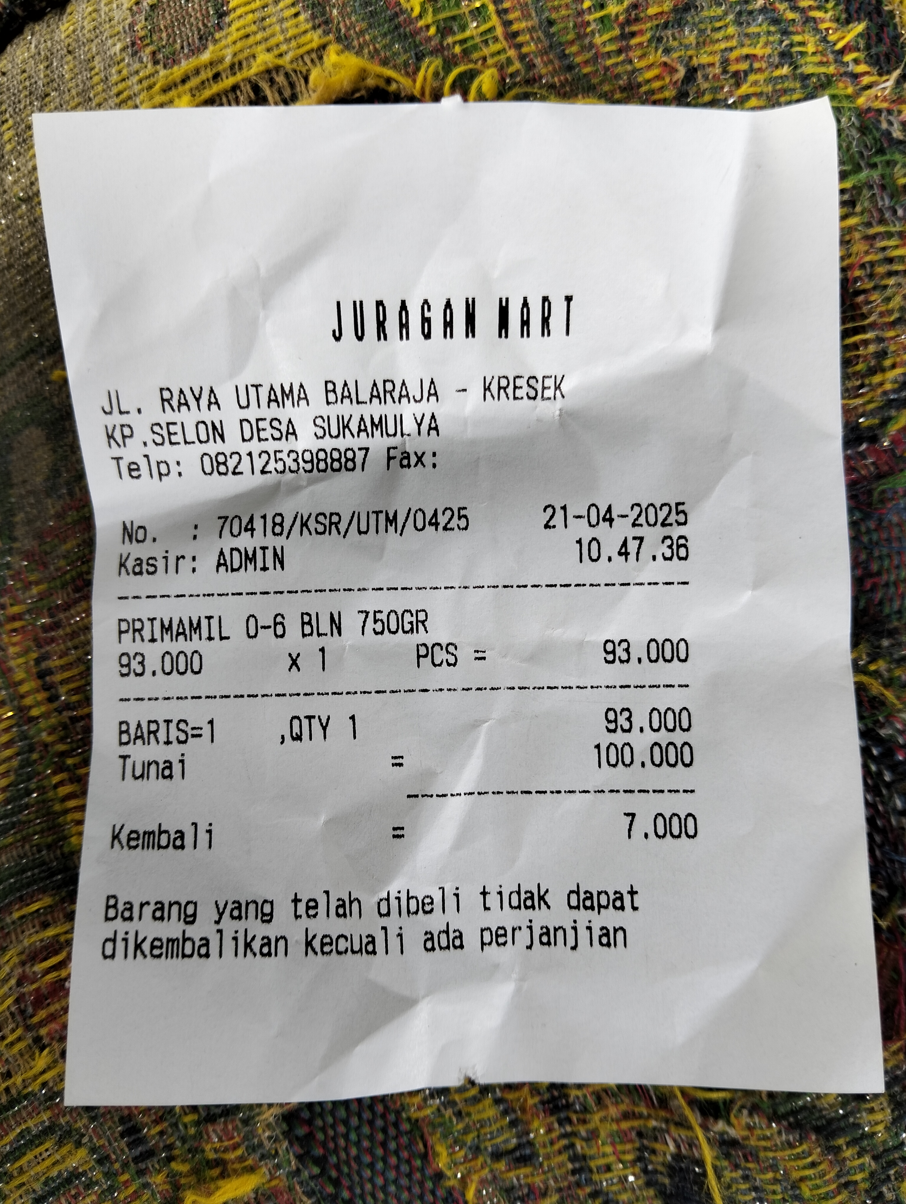Masih ada sisa dana sebesar Rp30.000, yang akan kami gunakan untuk membeli kebutuhan Namira lainnya.