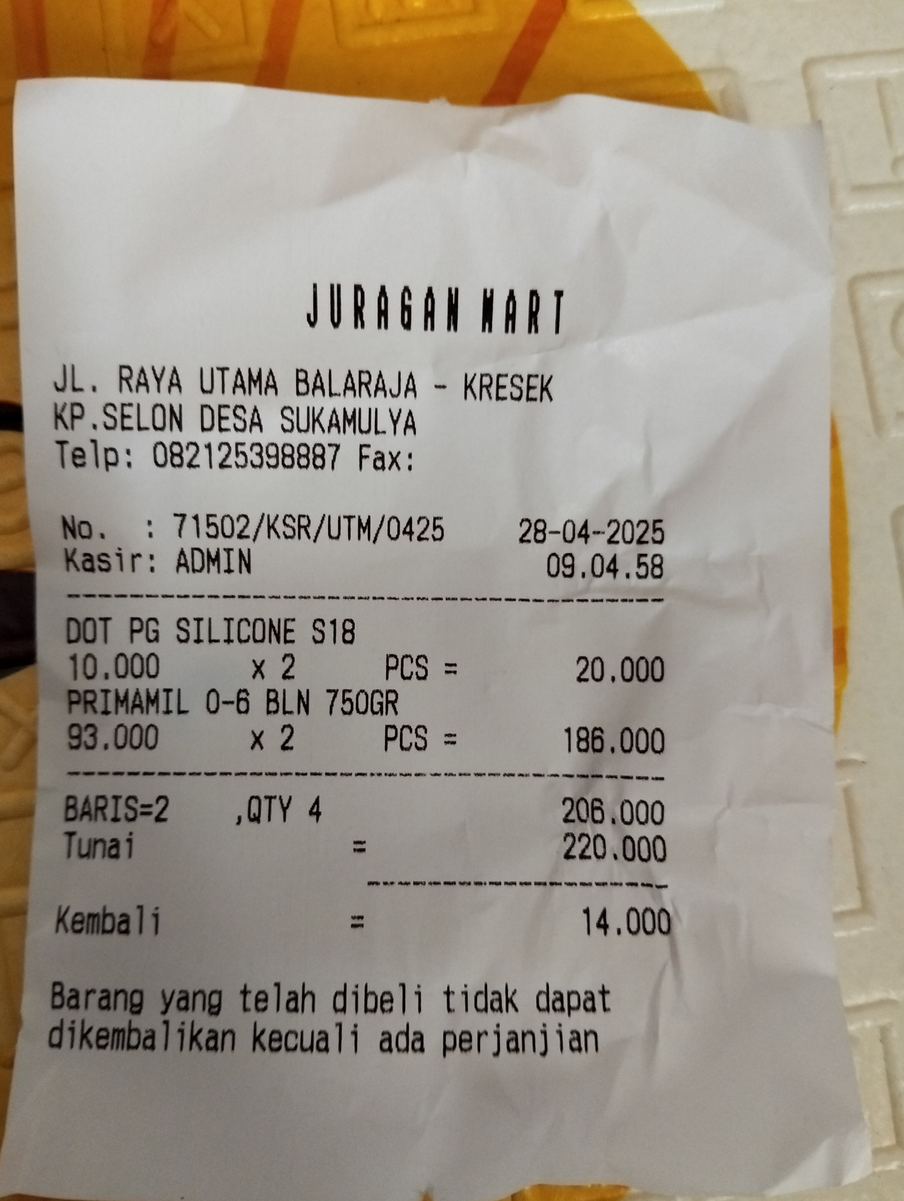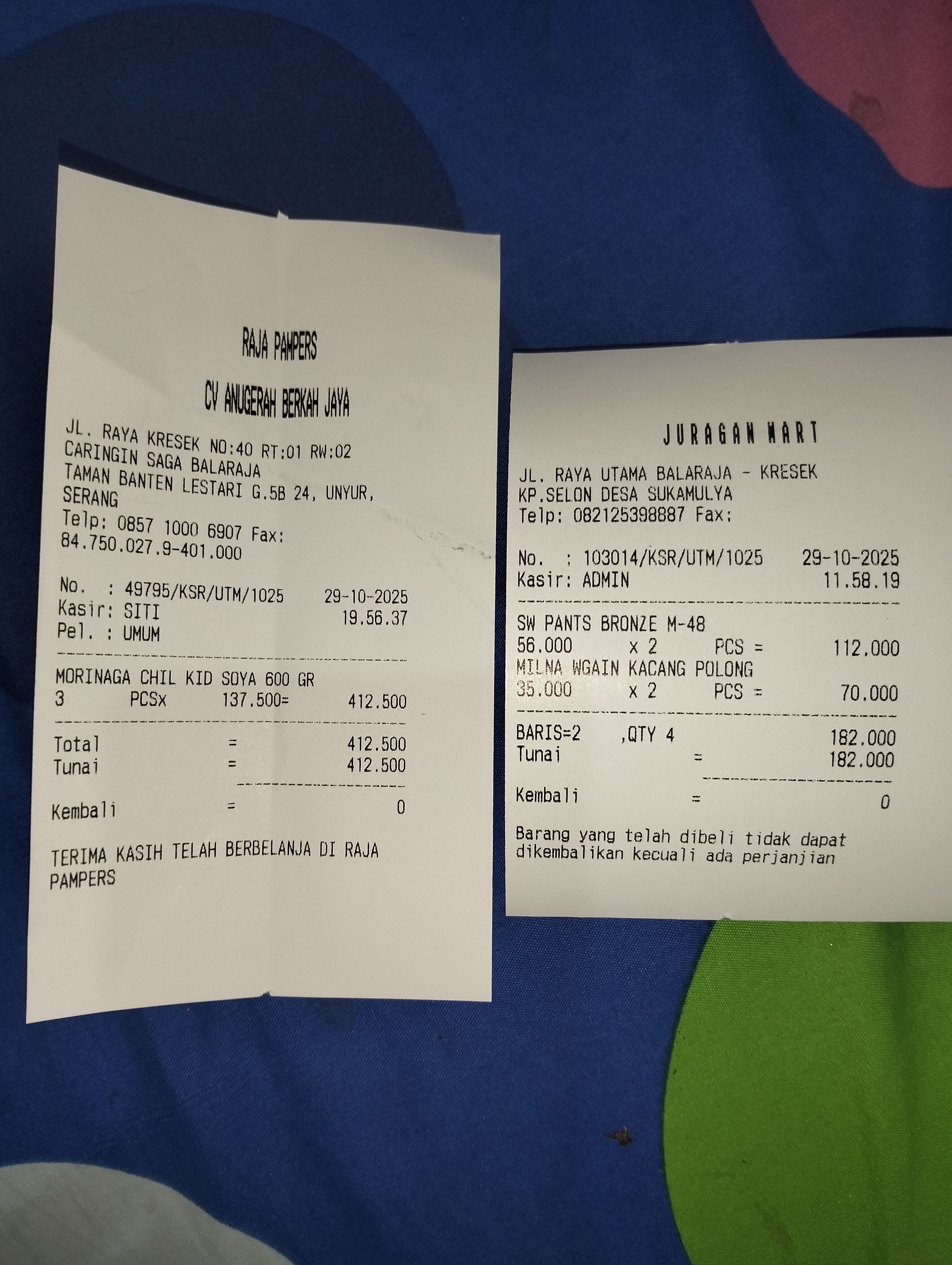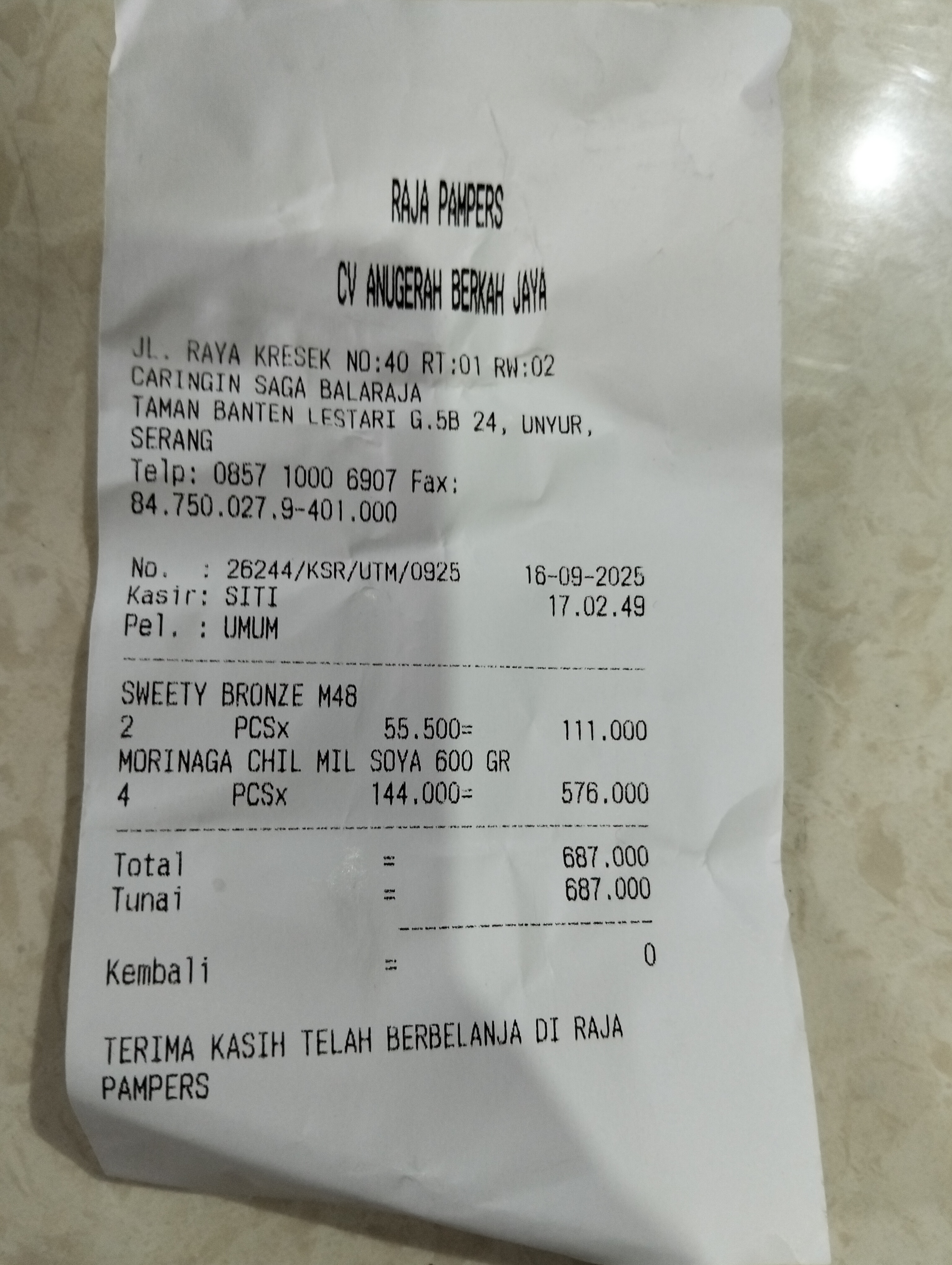 Masih ada sisa dana sebesar Rp30.000, yang akan kami gunakan untuk membeli kebutuhan Namira lainnya.