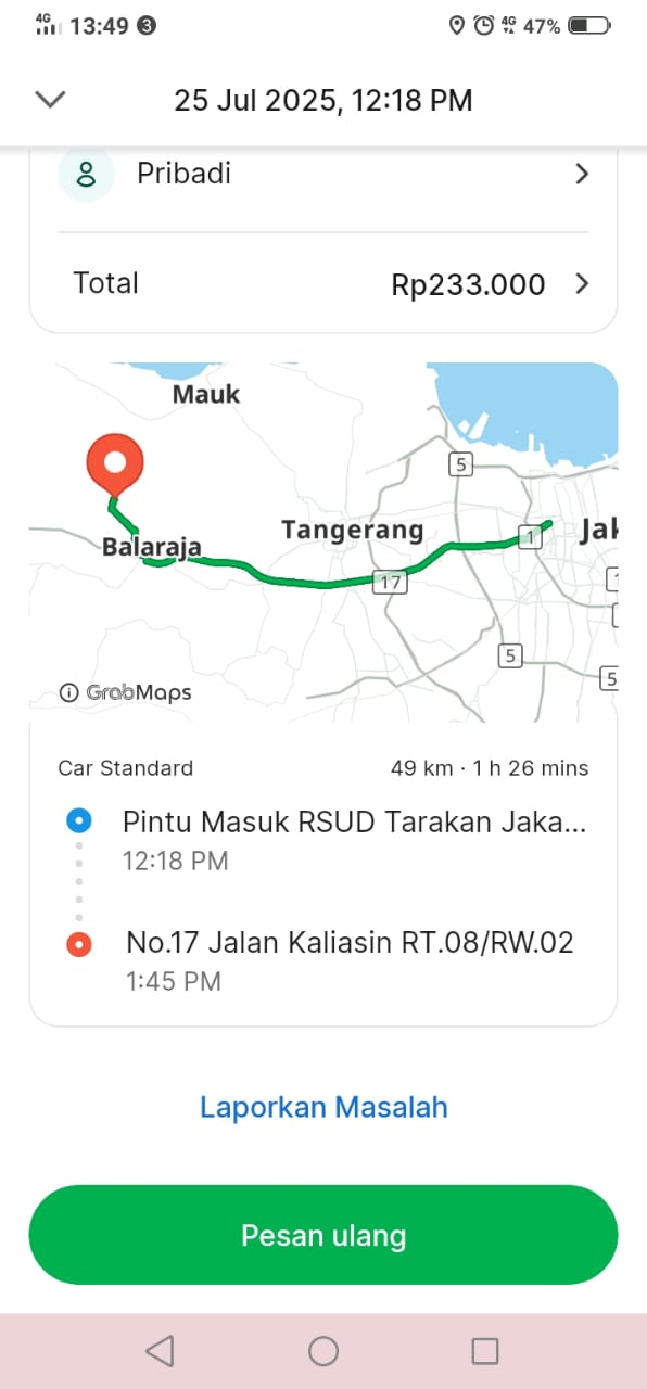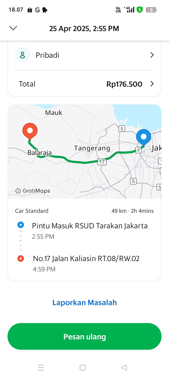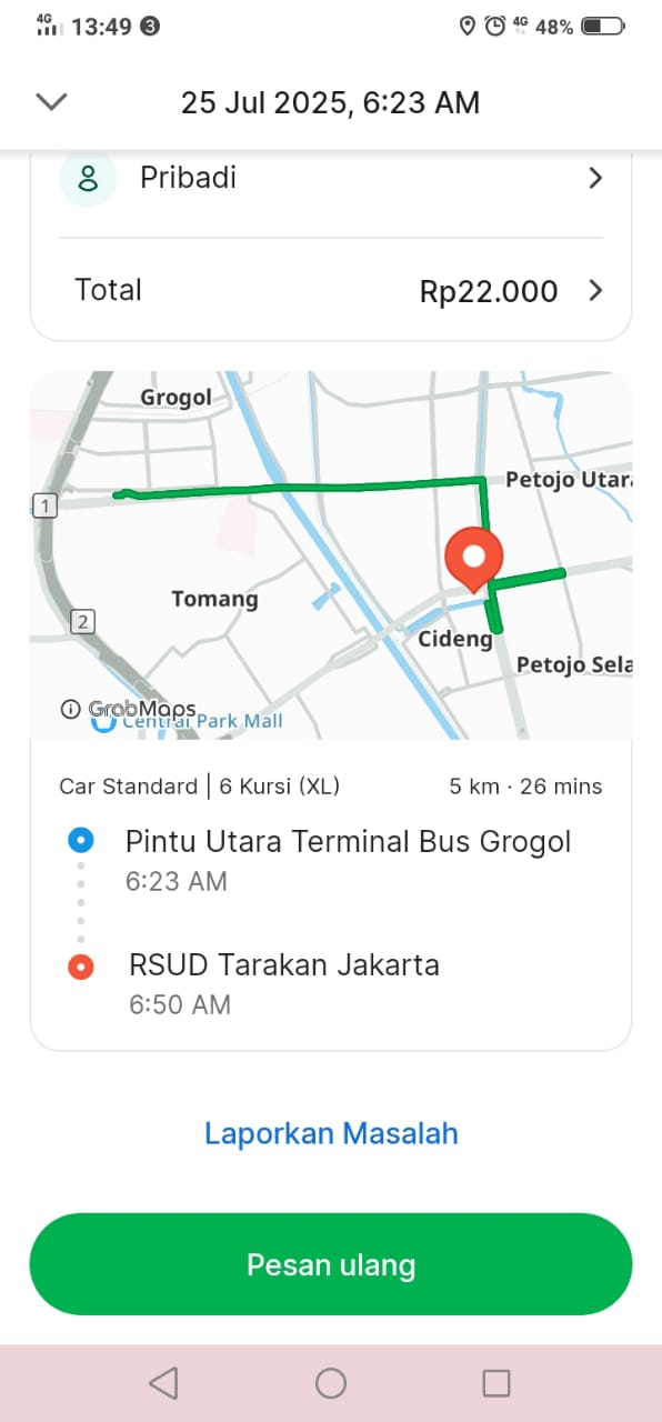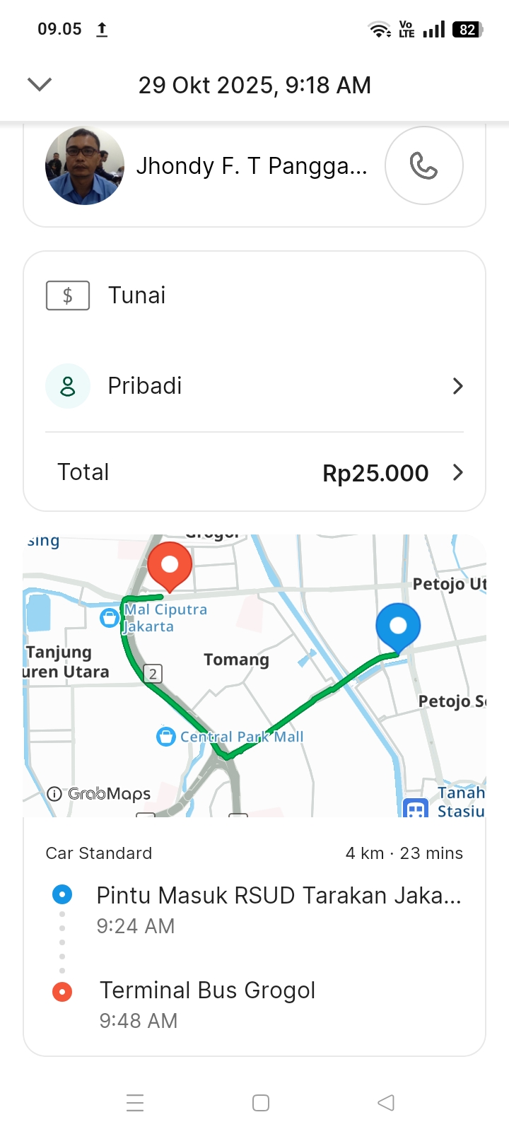 Ongkos pulang (Grab RSUD Tarakan-Terminal Grogol) = Rp25.000