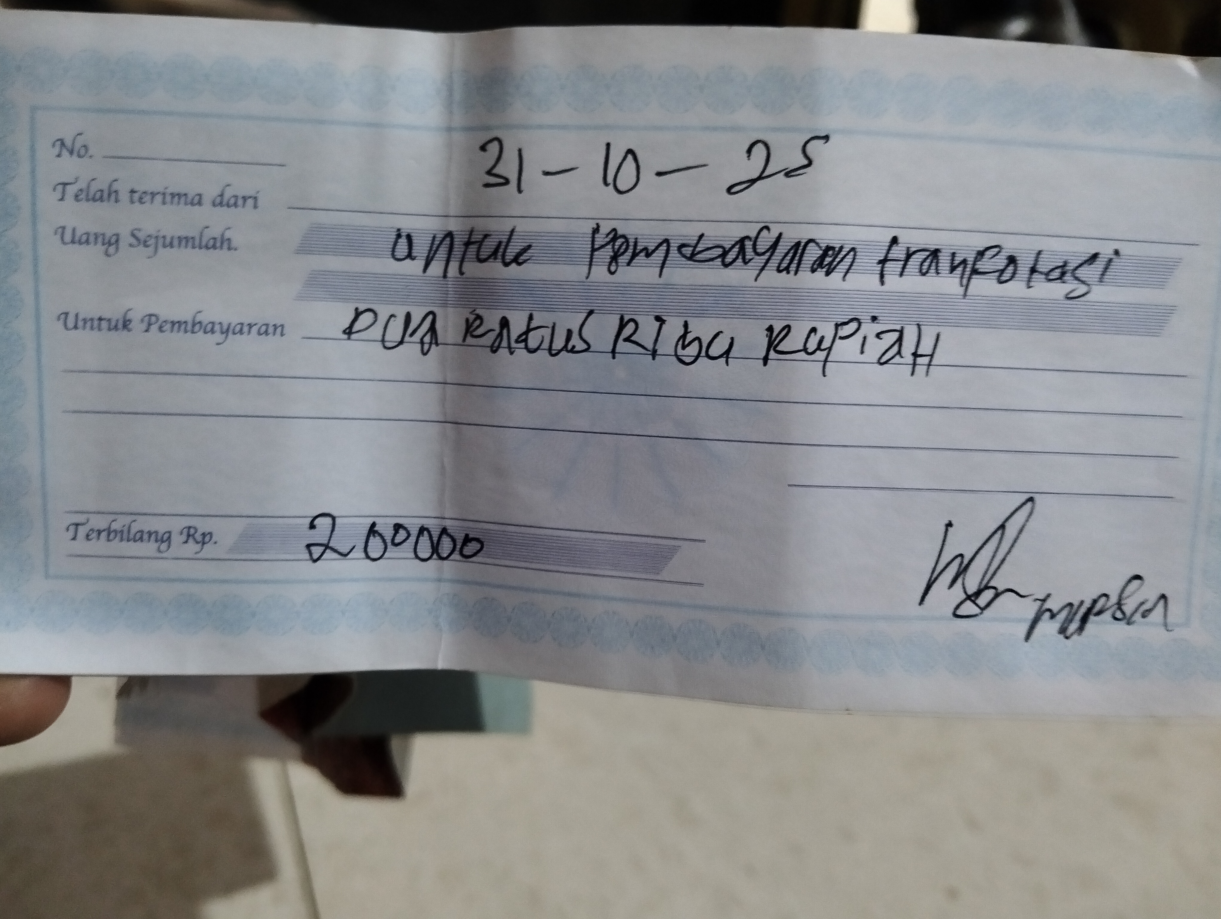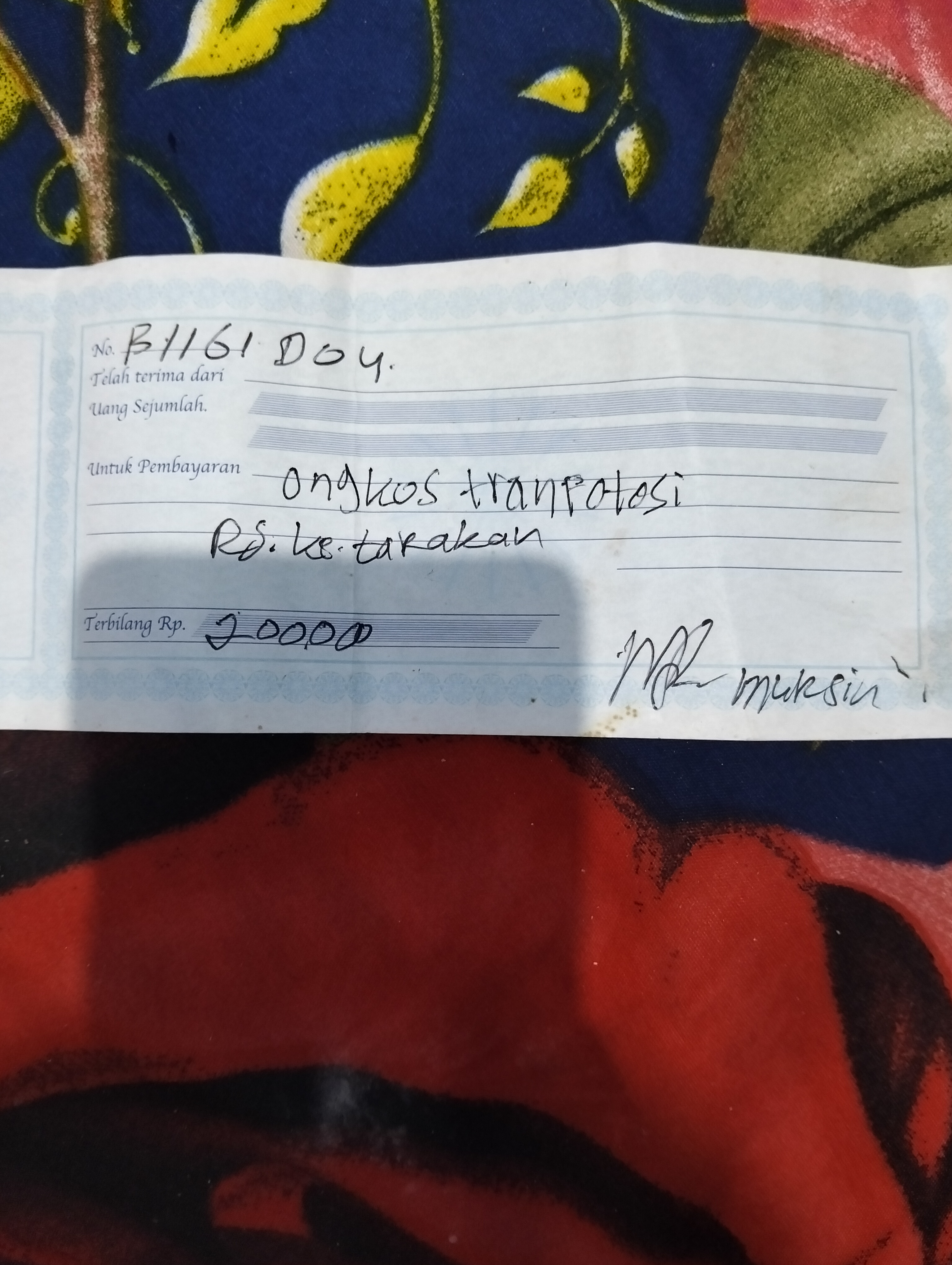 Masih ada sisa dana sebesar Rp296.500, yang kemudian digunakan untuk kontrol berikutnya ke RSUD Tarakan, dengan rincian: