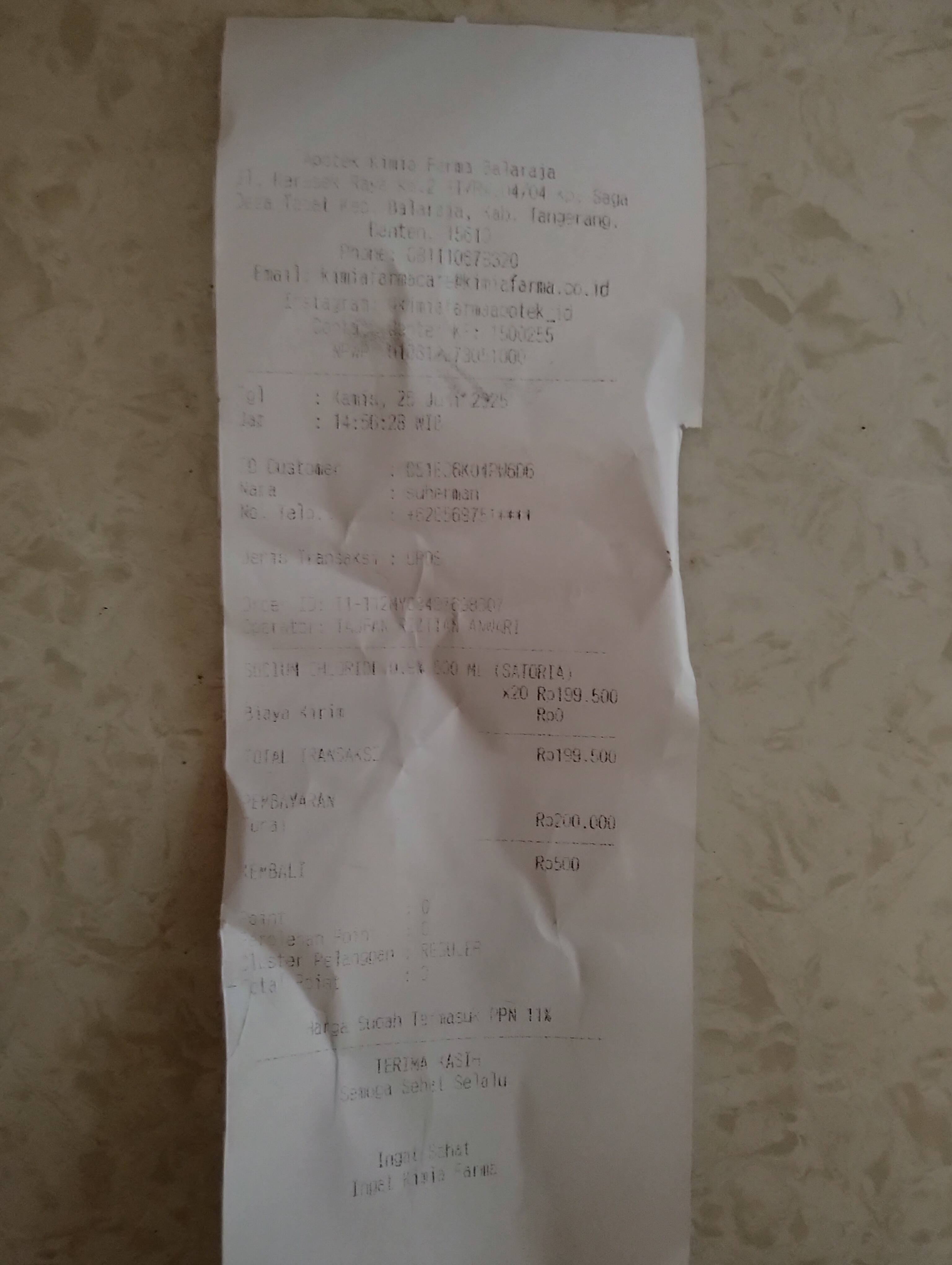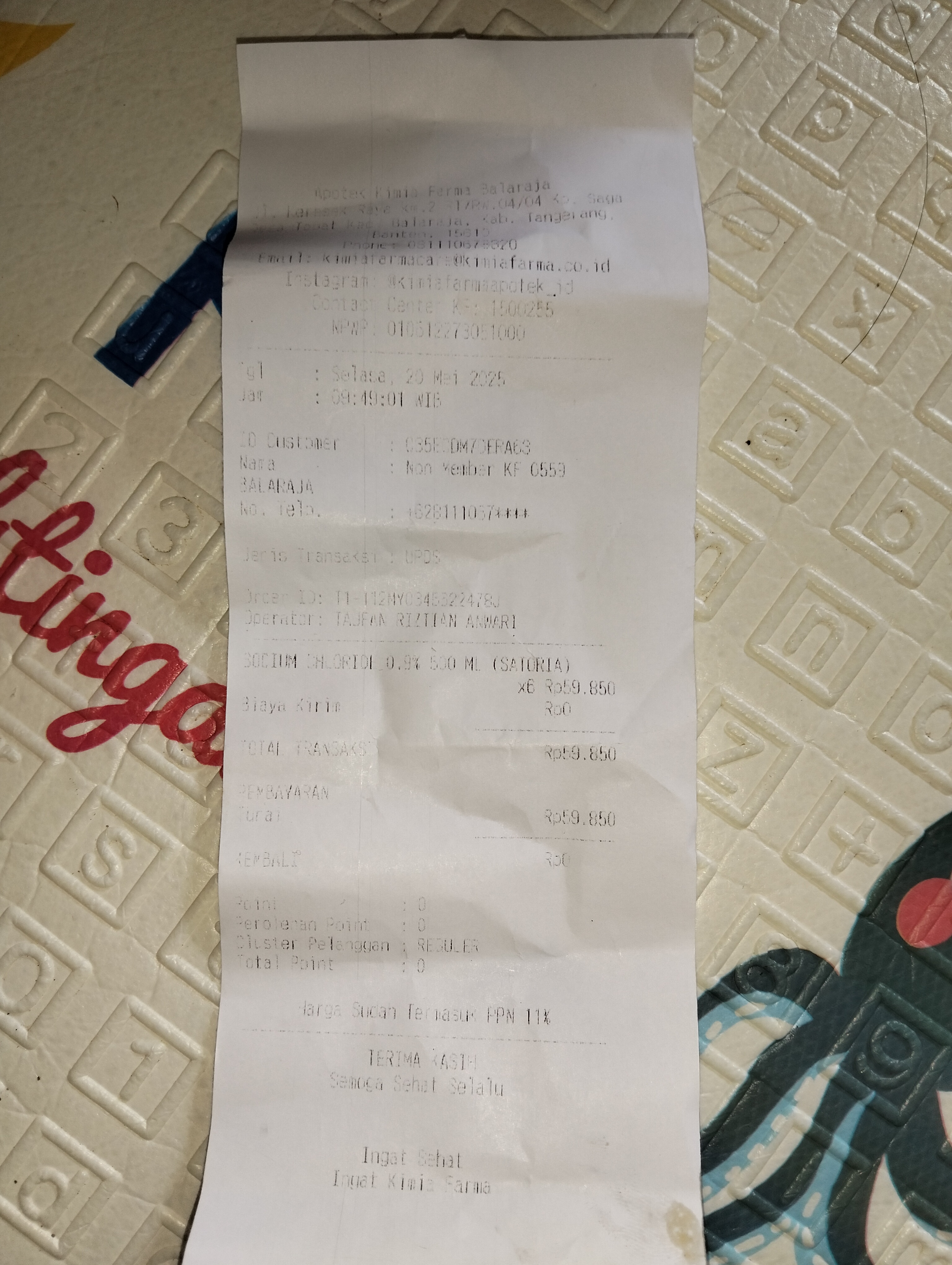NACL: 20 botol x Rp10.000 = Rp200.000