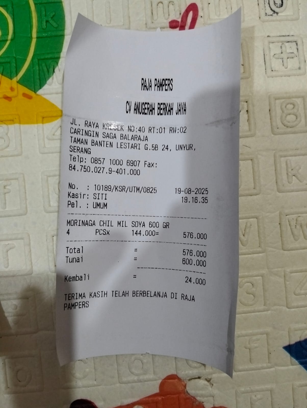 Susu Morinaga Chil Mil Soya 4 x Rp144.000 = Rp576.000