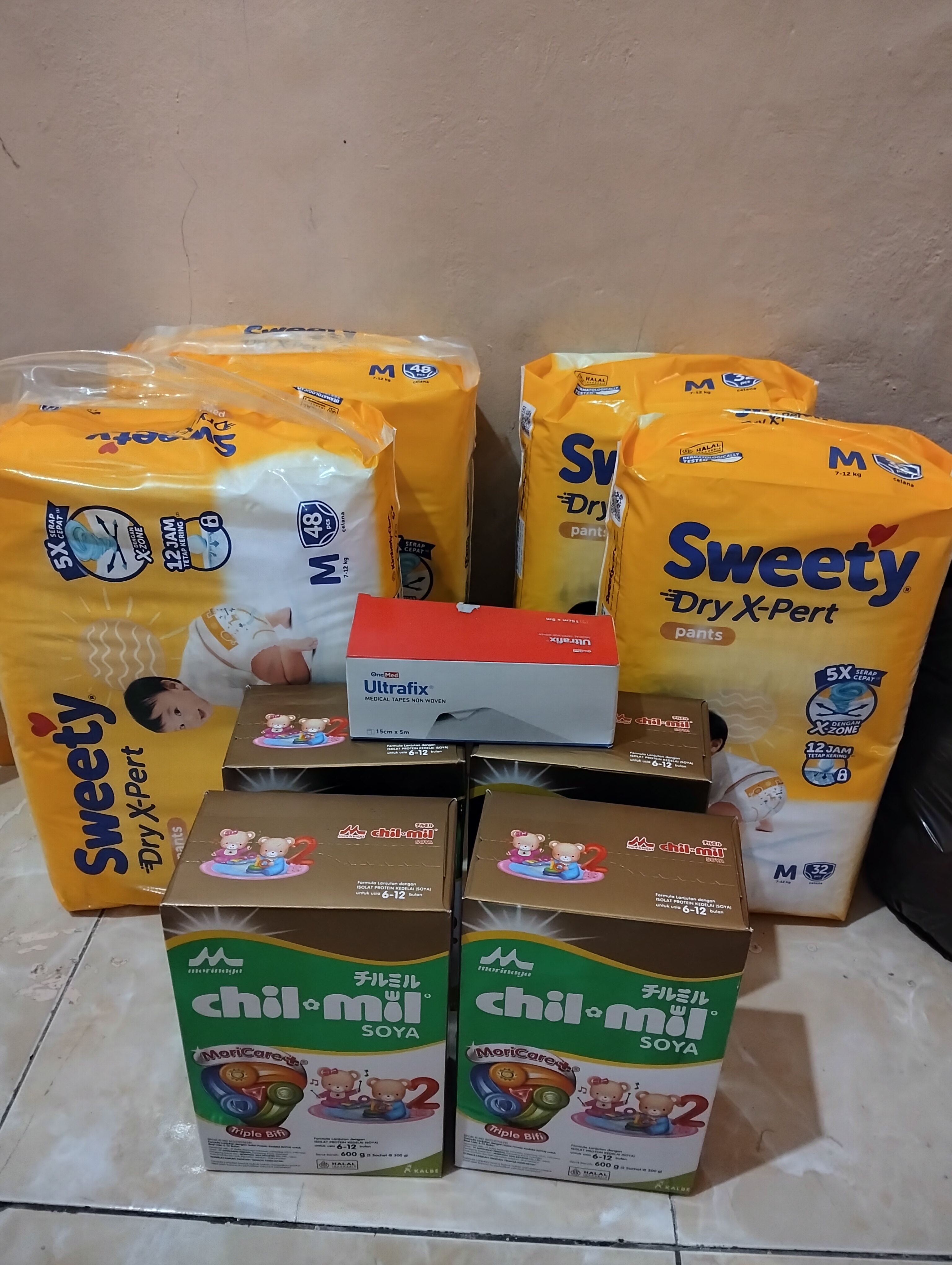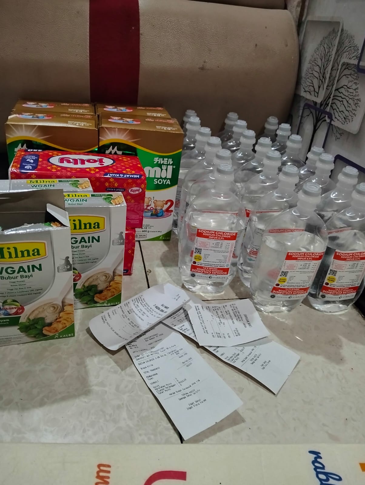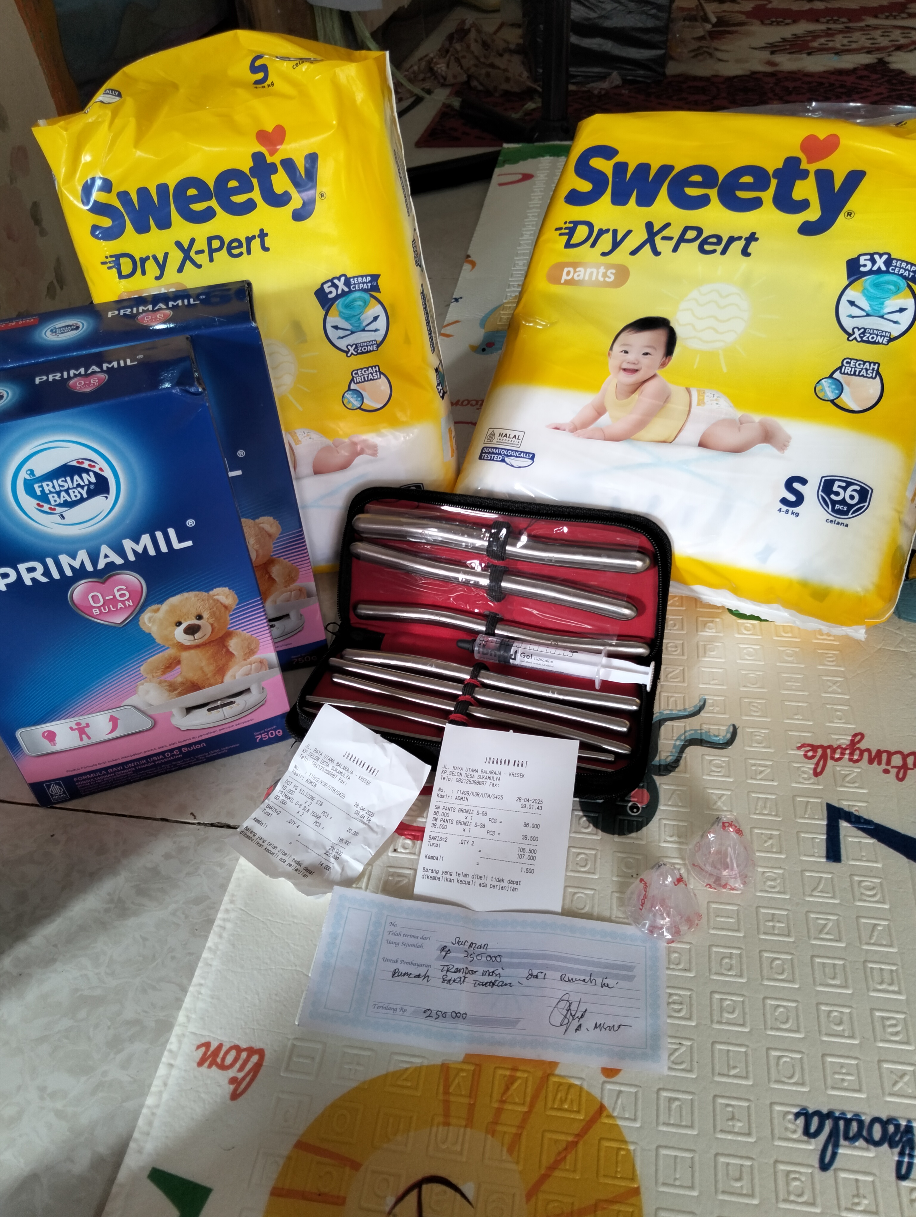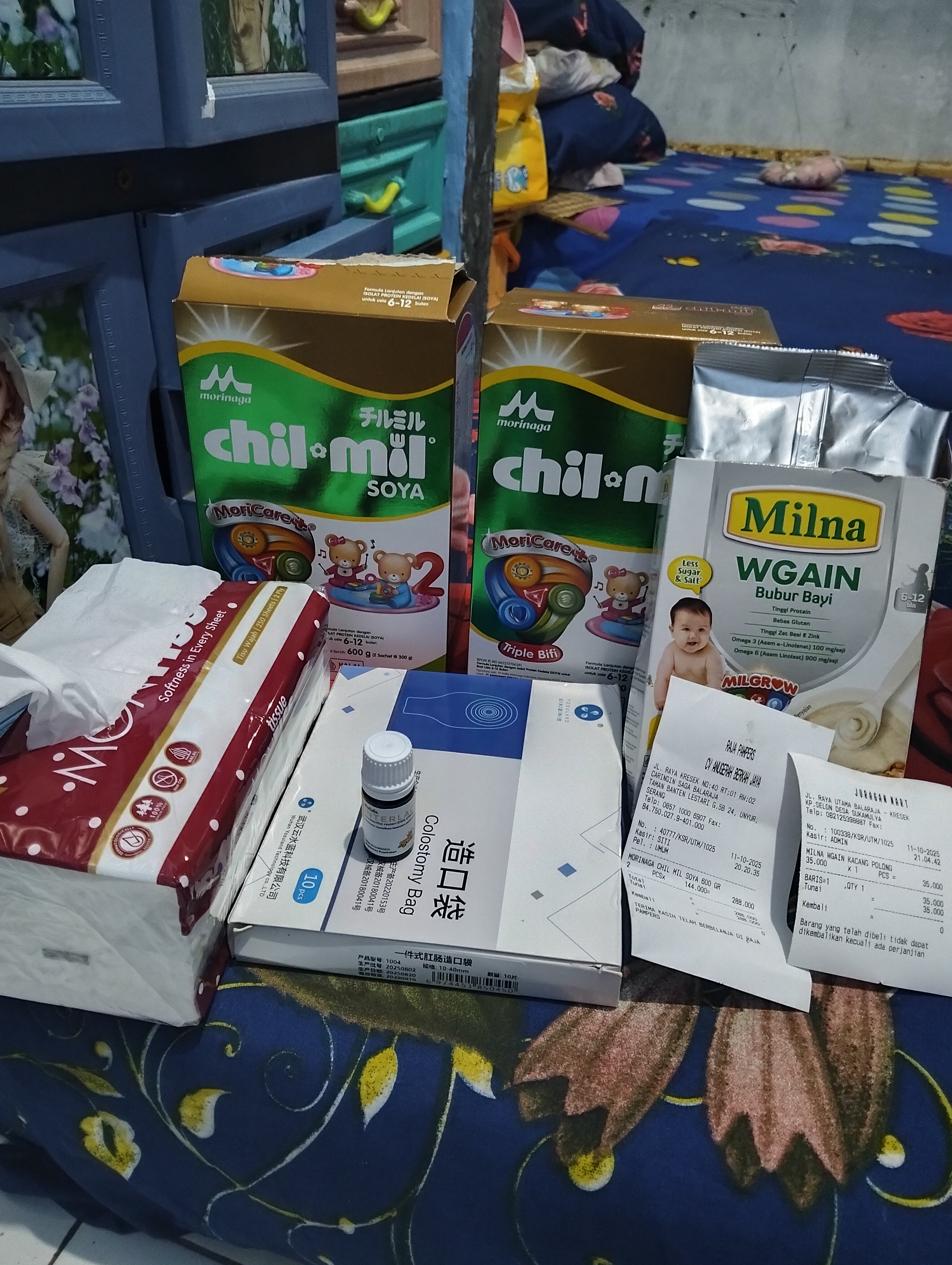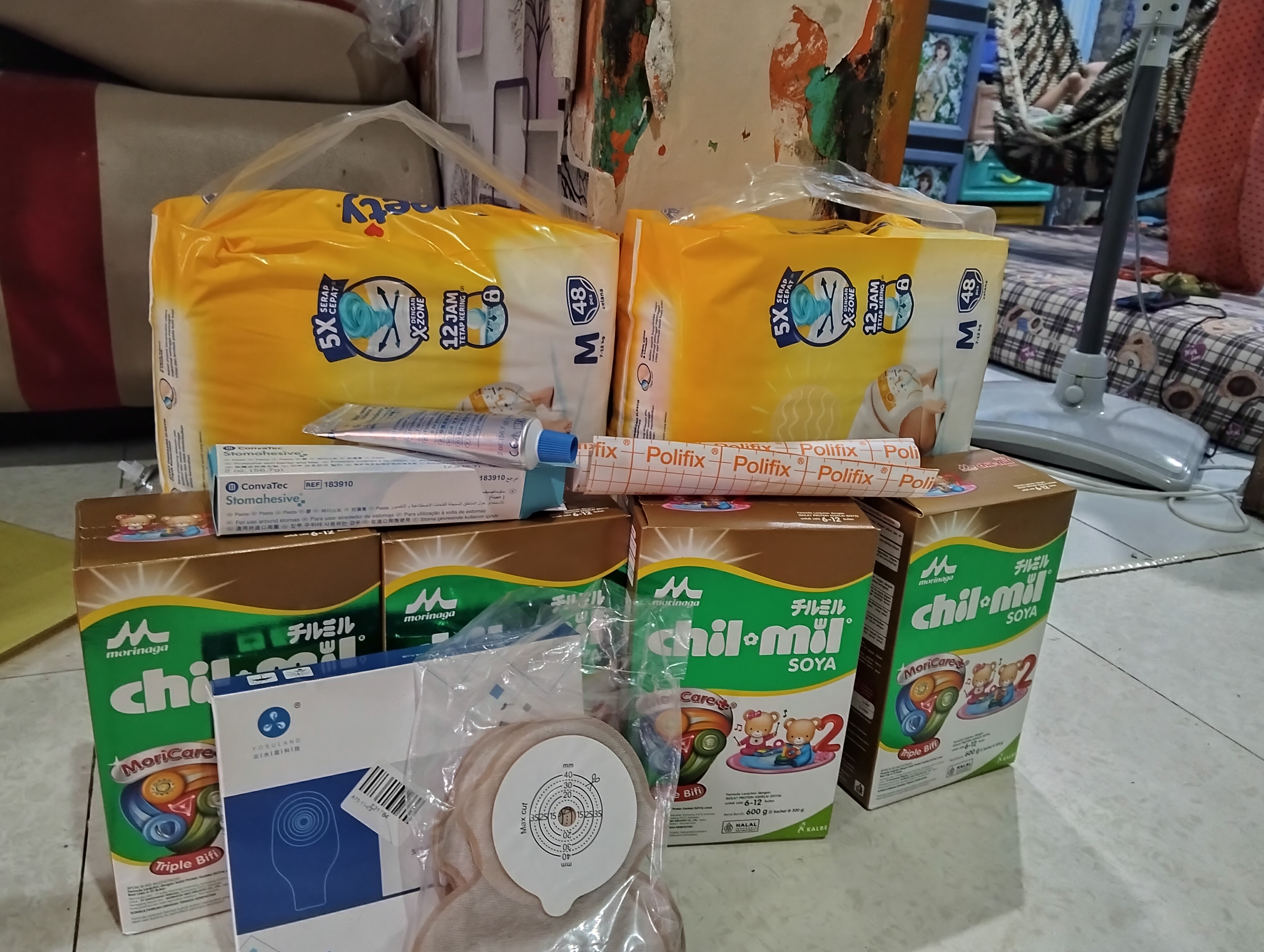 Dana bantuan #TemanBaik sudah saya gunakan untuk membeli kebutuhan Namira, seperti oksigen, pampers, susu, kantong kolostomi, perekat, kasa steril dan keperluan ongkos kontrol Namira.