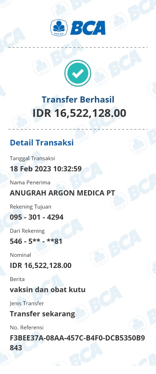 Ke rekening ****131 a/n Natha Satwa Nusantara