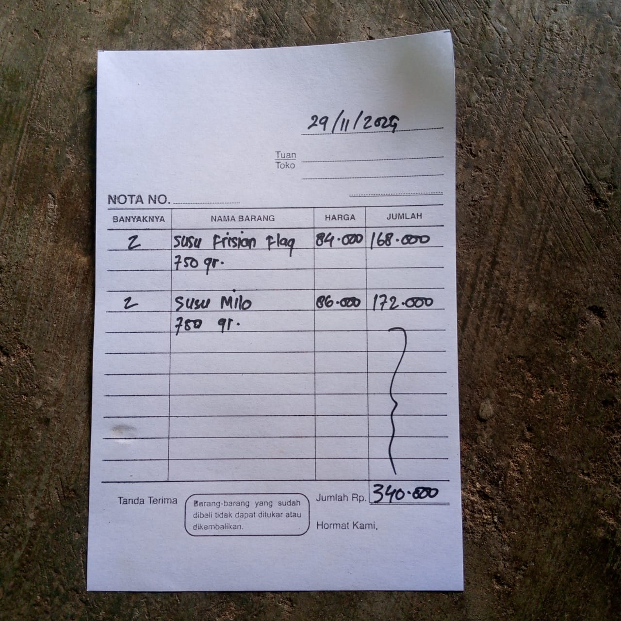 Dana digunakan untuk 1. Susu frisian flag 750 gr Rp84.000 x 2 dus = Rp168.000 2. Susu milo 700 gr Rp84.000 x 2 dus = Rp168.0002025-03-25 10:00:00