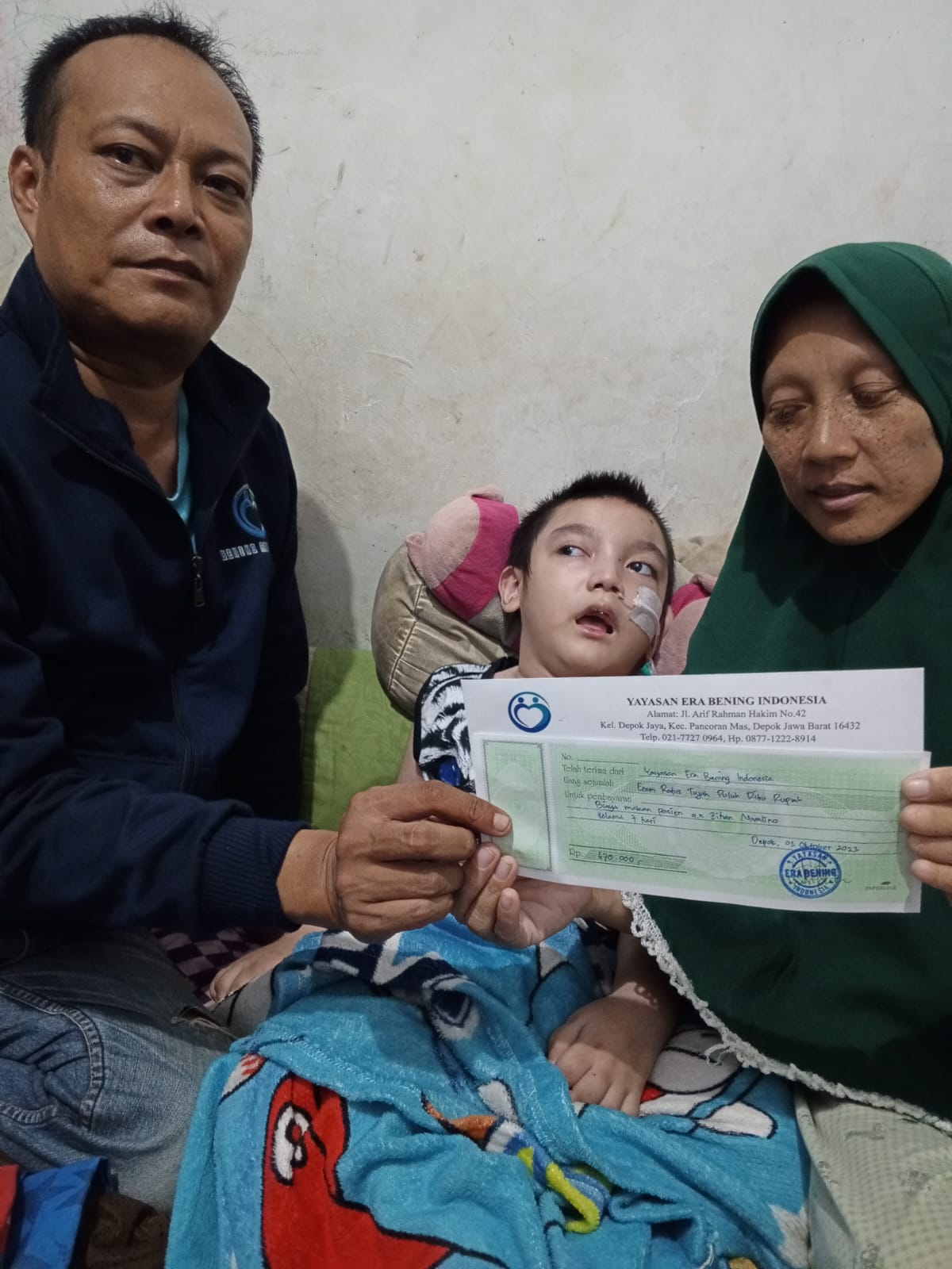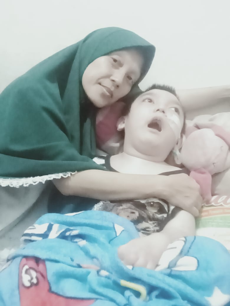 Saya khawatir, kalau tidak rutin kontrol, otak anak saya semakin terhimpit karena cairan dan terancam tidak bisa berfungsi lagi nantinya. Pengobatan dan kebutuhan anak saya mencapai puluhan juta, sulit sekali kalau hanya mengandalkan dari penghasilan saya yang hanya Rp 30 ribu sehari.