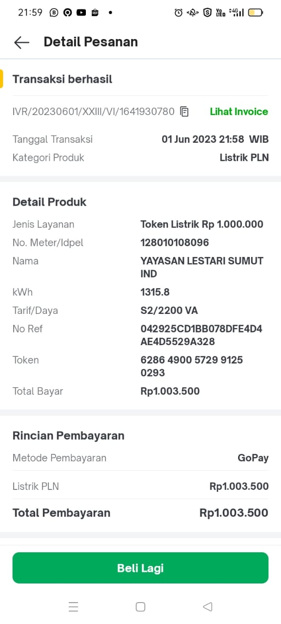Dana digunakan untuk 1. Pembayaran tagihan token listrik Rp970.000 2. Tabung Gas LPG Rp318.000 3. Biaya transportasi angkot dan mobil pick up antar jemput setiap hari untuk pergi ke sekolah Rp940.000.2023-04-06 17:28:10