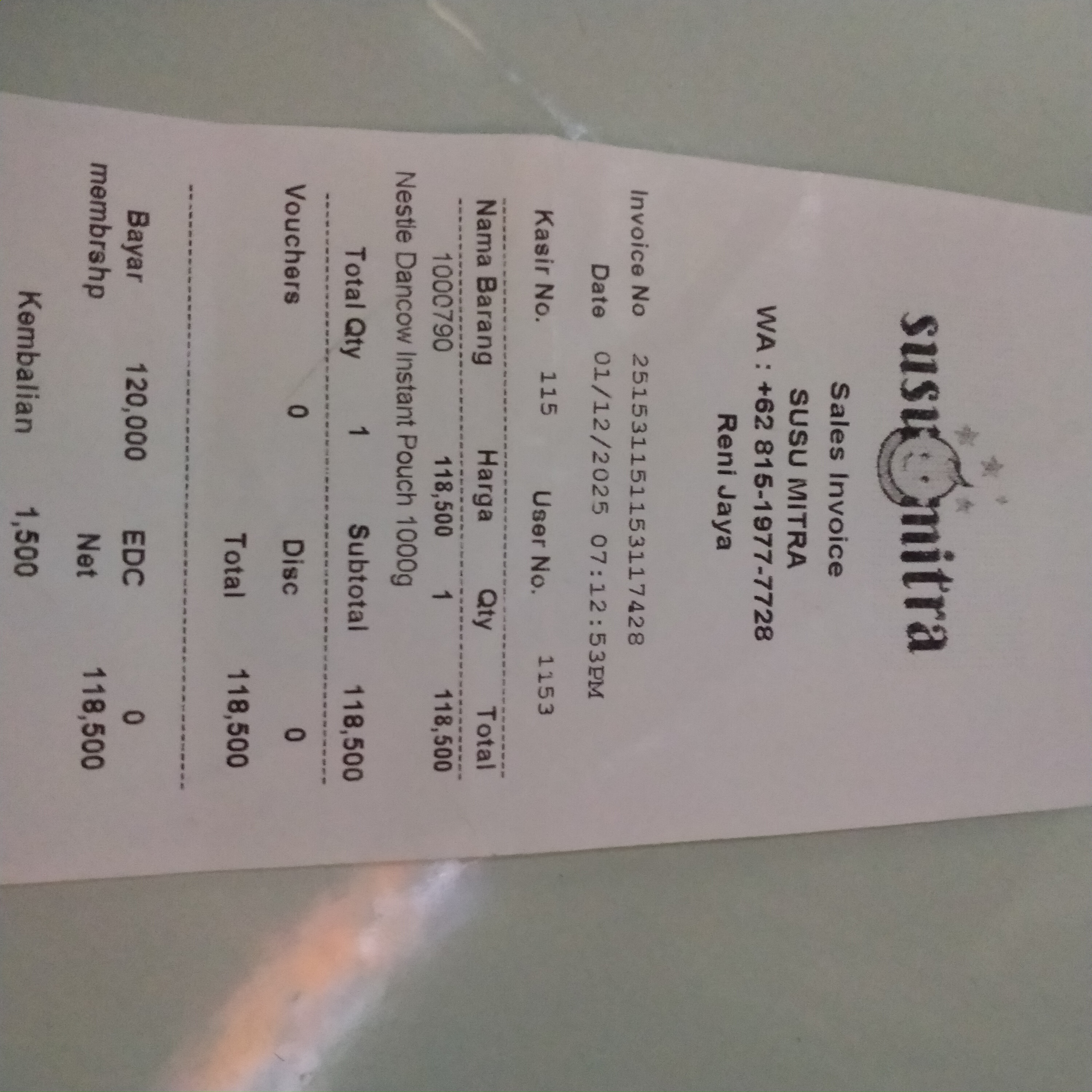 Dana digunakan untuk 1. Susu dancow fartigrow Rp231.000 2. Obat Aspilet Rp27.0002025-08-05 09:48:12