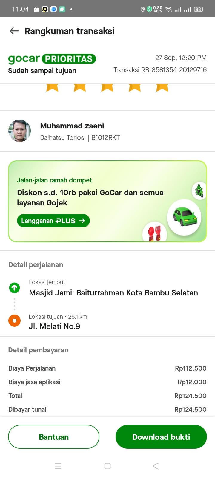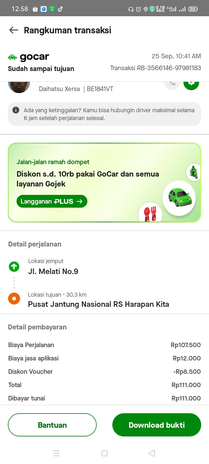 Adapun bantuan dari TemanBaik untuk anakku sudah digunakan untuk biaya transportasi ojek online untuk pulang dan pergi ke RS Harapan Kita pada Senin 23 Oktober 2023 dan biaya makan kami.