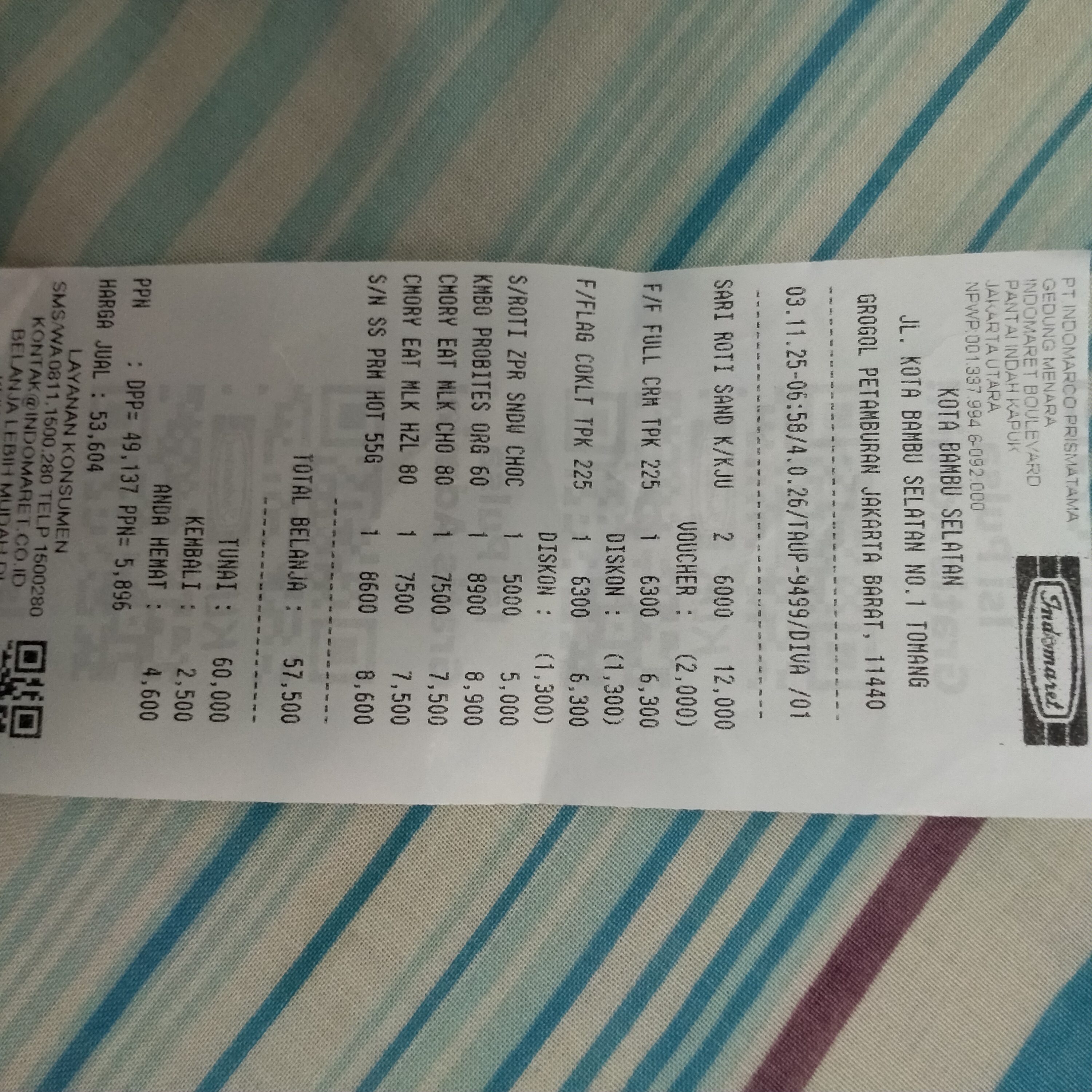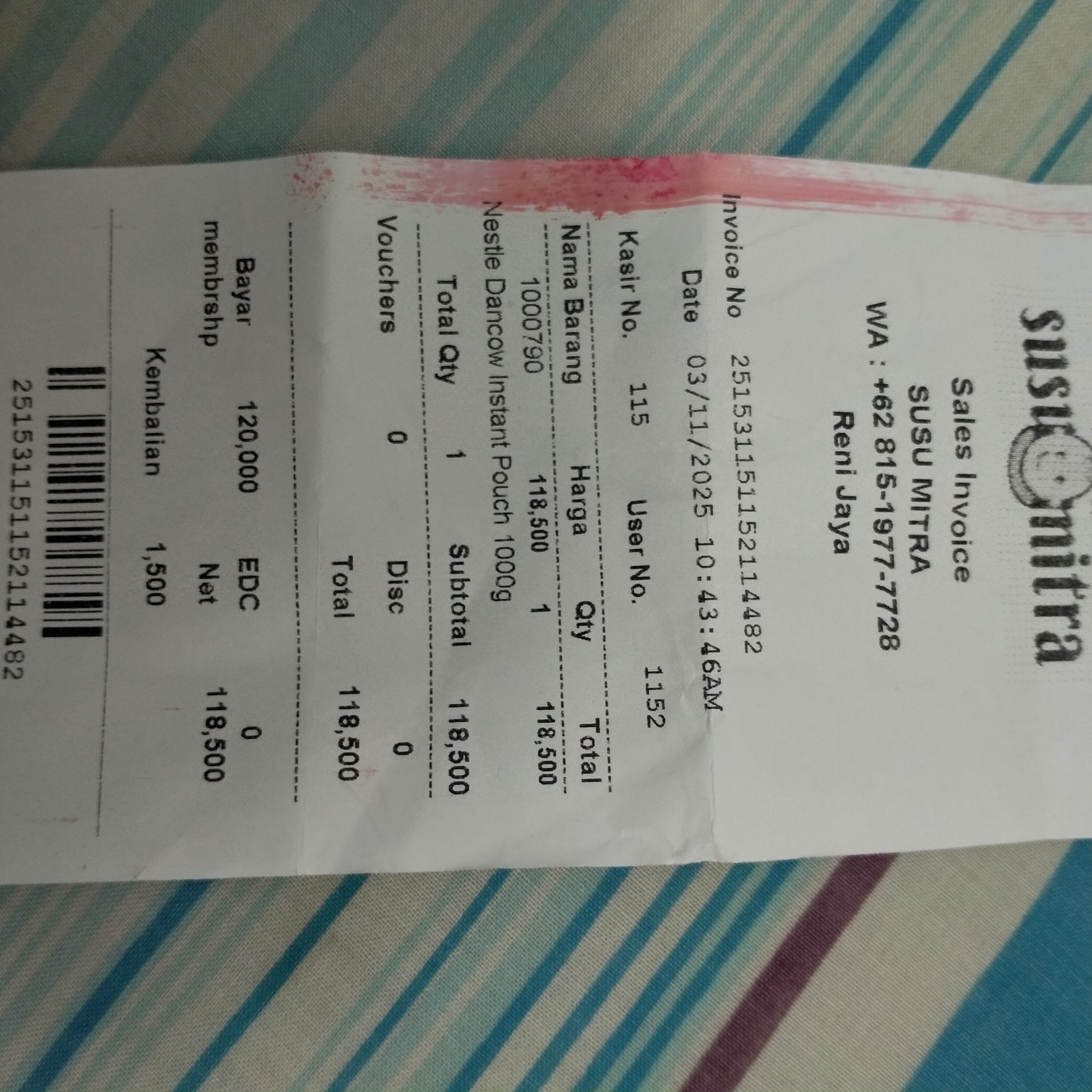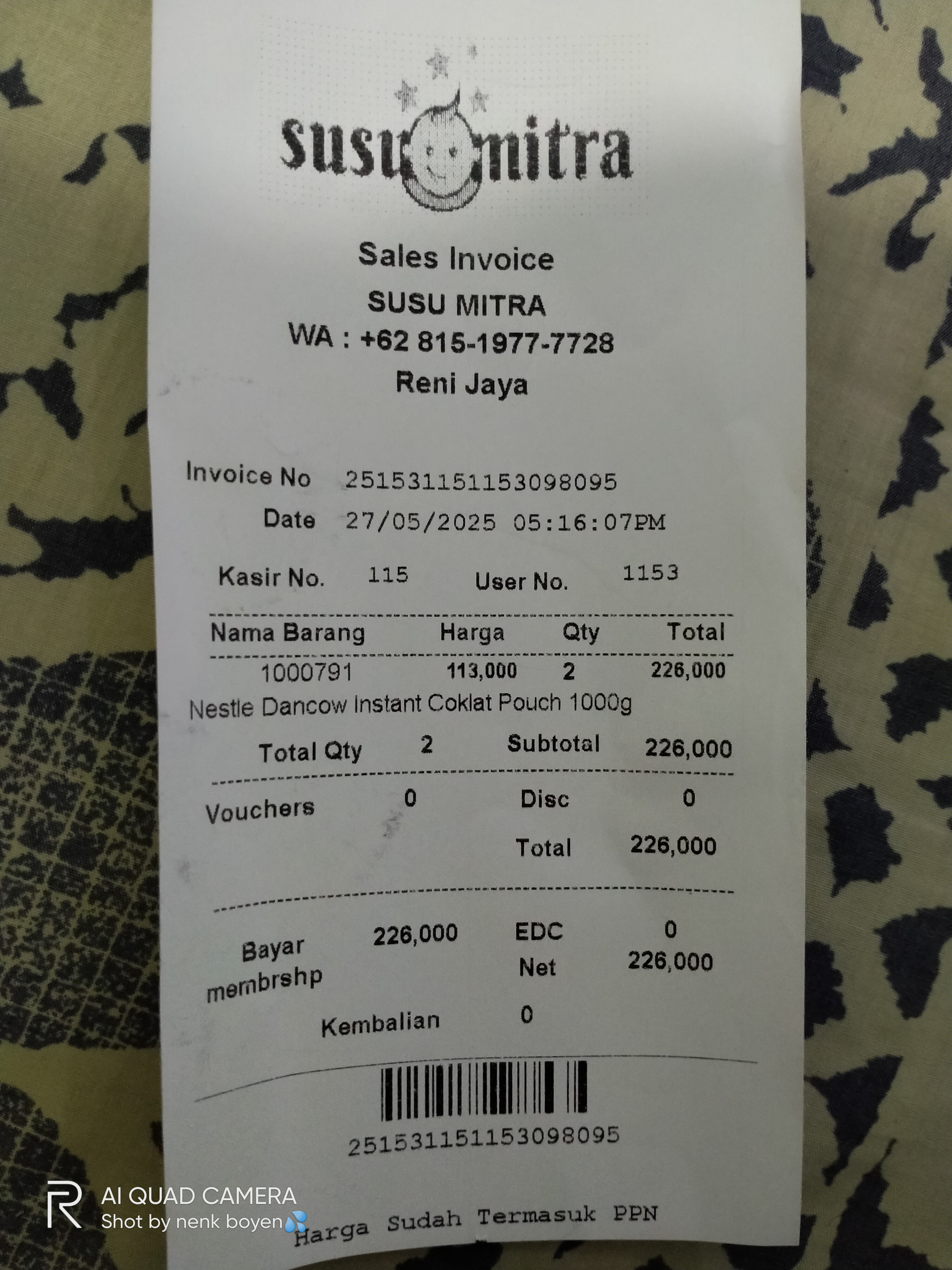 Dana digunakan untuk 1.Biaya bensin kontrol ke RS Rp40.000 2.Biaya konsumsi kontrol Rp60.000 3.Susu dancow fatrigrow 2kg Rp226.0002025-03-19 13:44:07