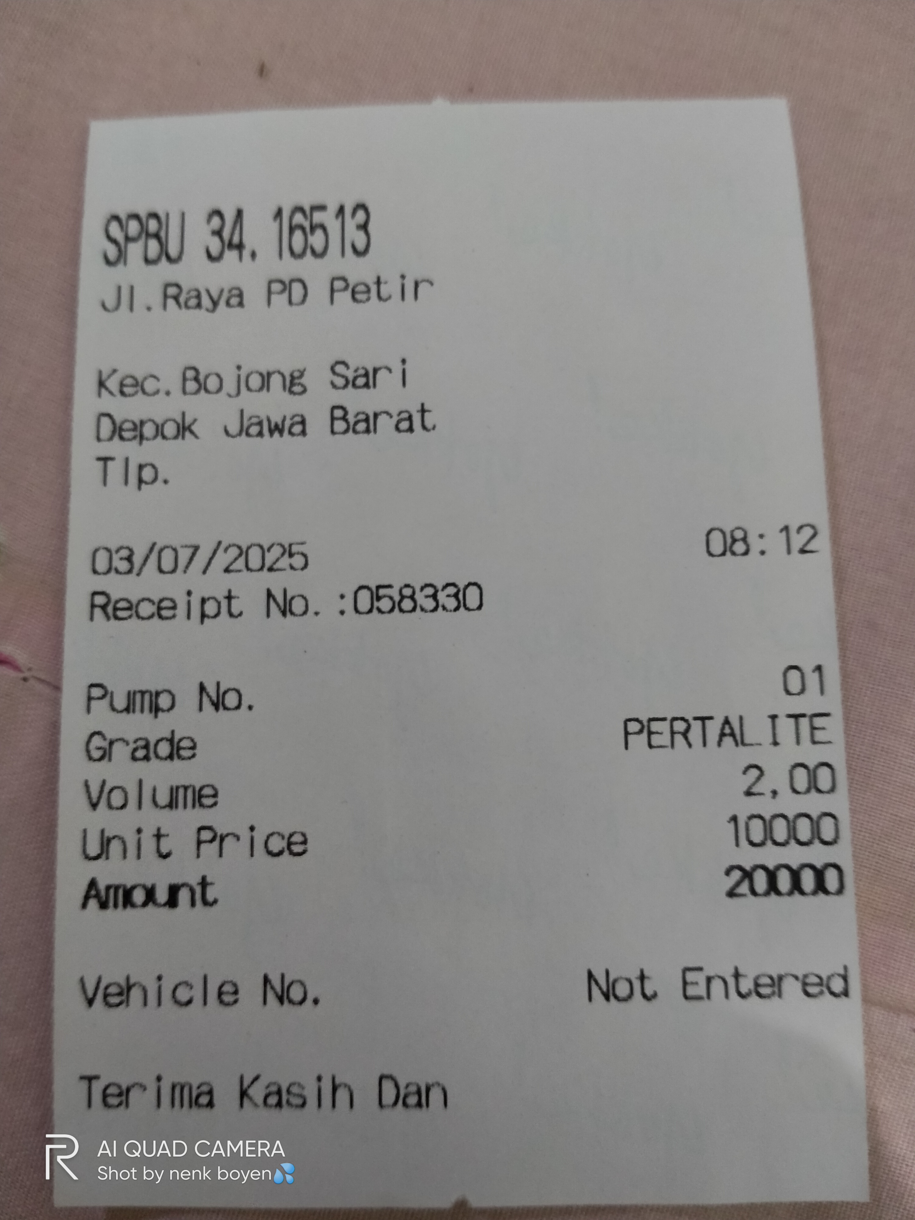 Dana digunakan untuk 1. Bensin motor ke RS Rp30.000 2. Konsumsi Febrian selama di RS Rp70.000 3. Susu dancow fartigrow 2kg Rp232.0002025-09-15 09:18:04