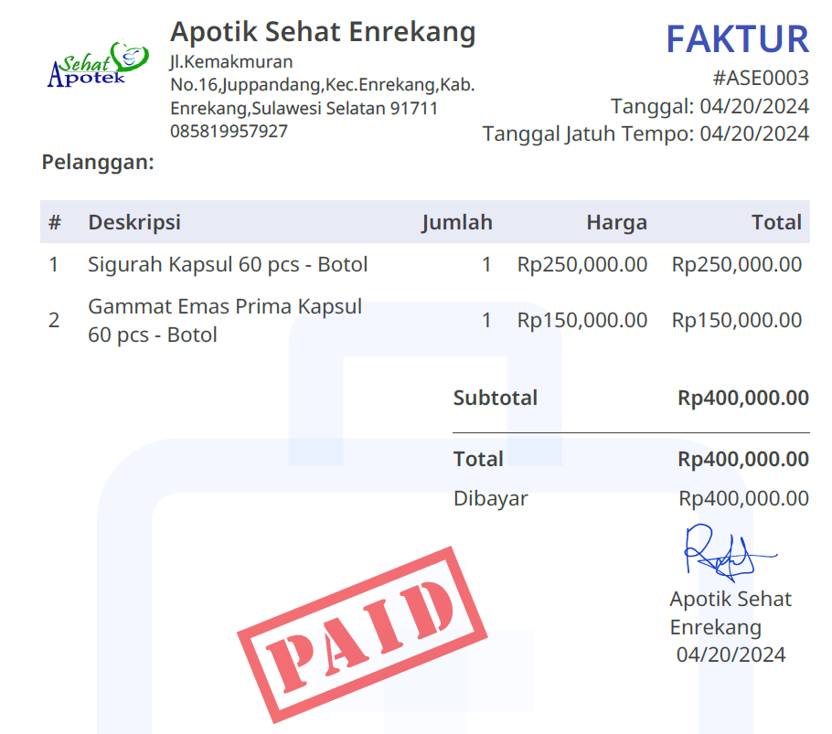 1. Membeli susu etawa Rp95.000 X 5 Box = Rp475.000 (15 Hari)