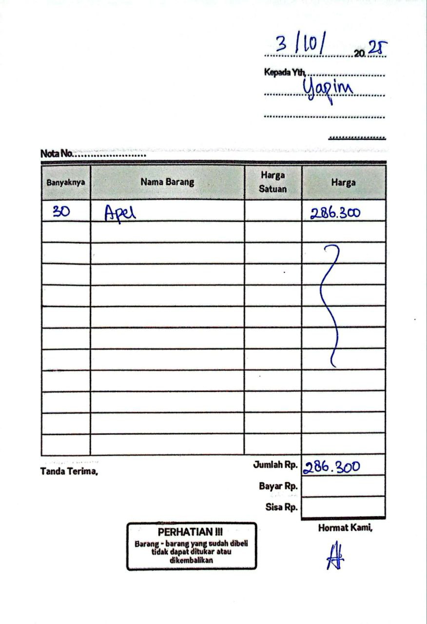 Kami ingin mengabarkan bahwa donasi dari #TemanBaik semua telah digunakan untuk membeli berbagai kebutuhan makanan sehat bagi adik-adik yatim dan piatu di sekitar yayasan kami. Sebanyak 30 anak telah menerima manfaat dari bantuan ini.