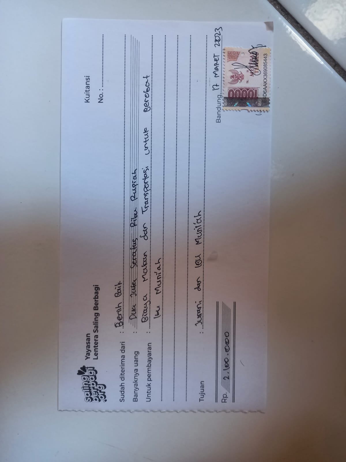 Ke rekening ****0200300 a/n YAYASAN LENTERA SALING BERBAGI