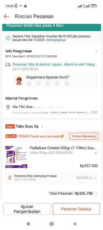 Dana digunakan untuk 1. Susu pediasure 800 gram Rp360.000 2. Minyak telon Rp20.000 3. Tisu Rp20.000 4. Konsumsi untuk cuci darah Rp48.0002025-10-24 16:47:44