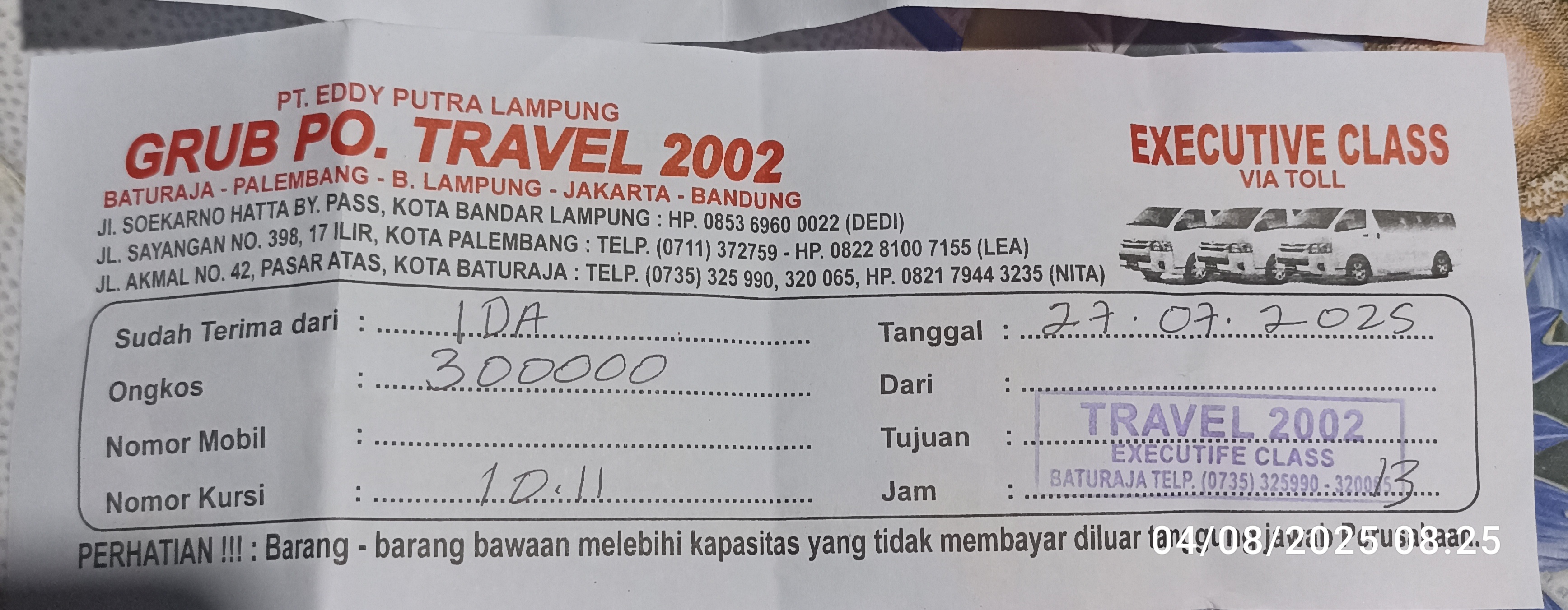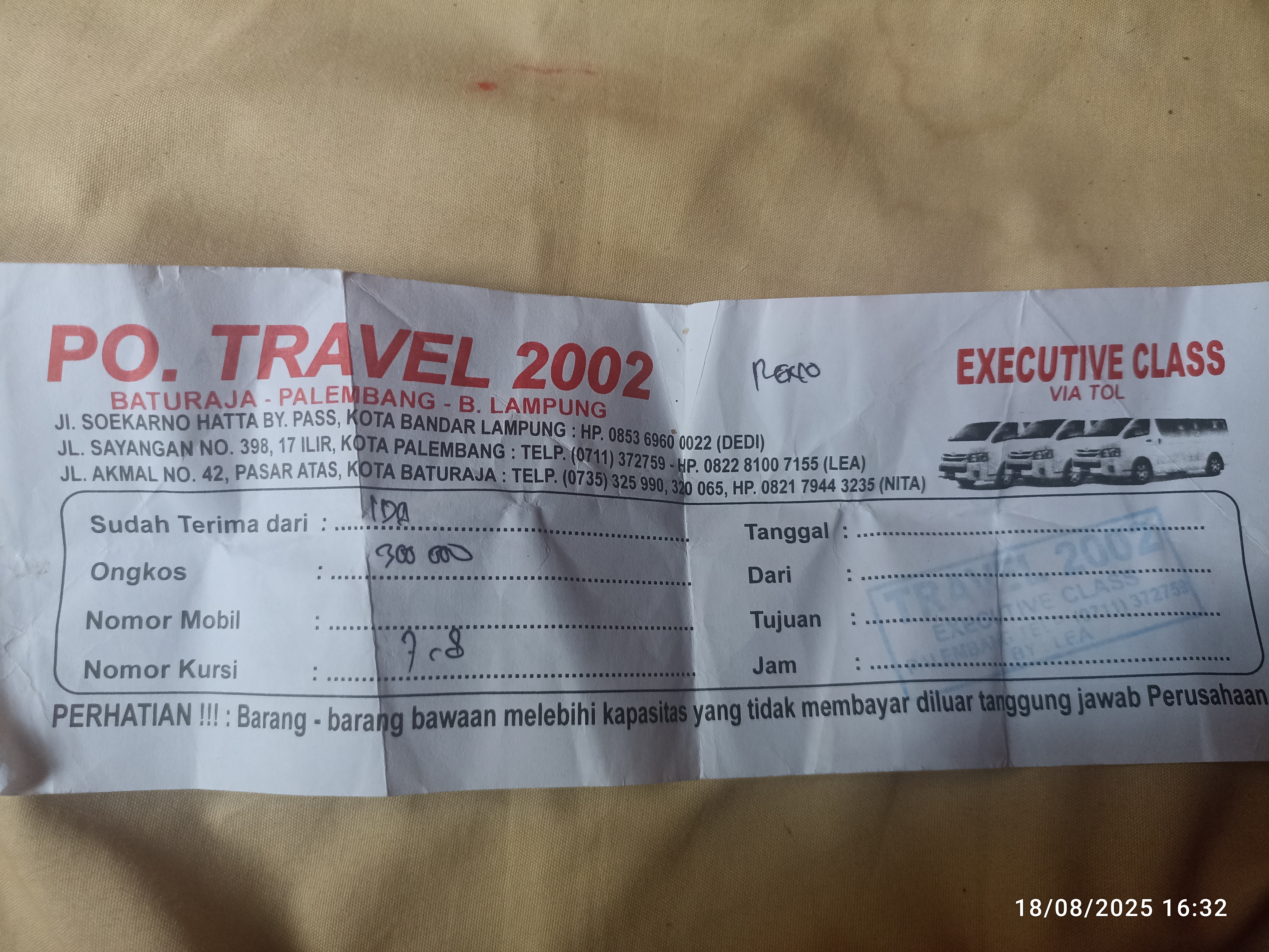 Biaya transportasi kontrol ke palembang2022-02-02 19:54:24