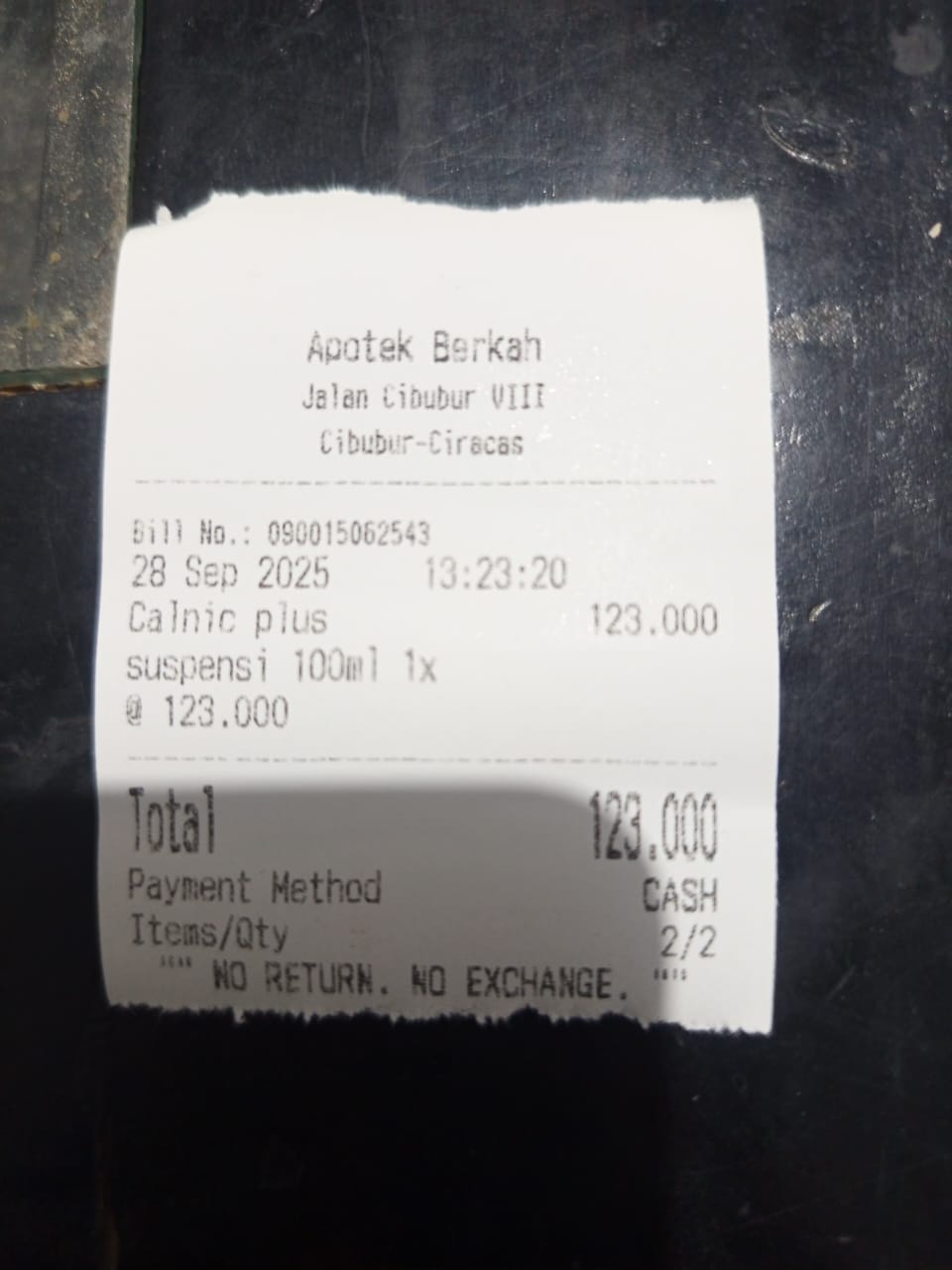 Dana digunakan untuk 1. susu pediacomplete vanila 800gr Rp 421.000 2. obat calnic plus sirup Rp117.6002025-09-22 19:26:17