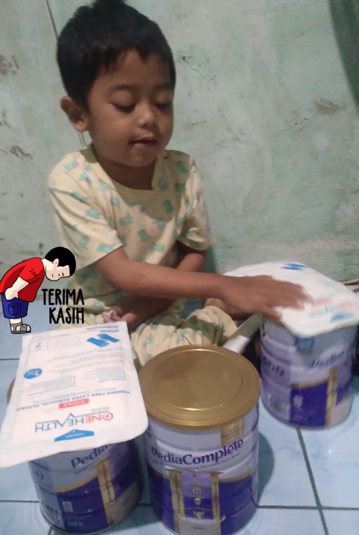 Dana bantuan dari #TemanBaik sudah saya belikan susu. Saya tidak bisa bekerja lagi karena harus mendampingi anak saya terus.