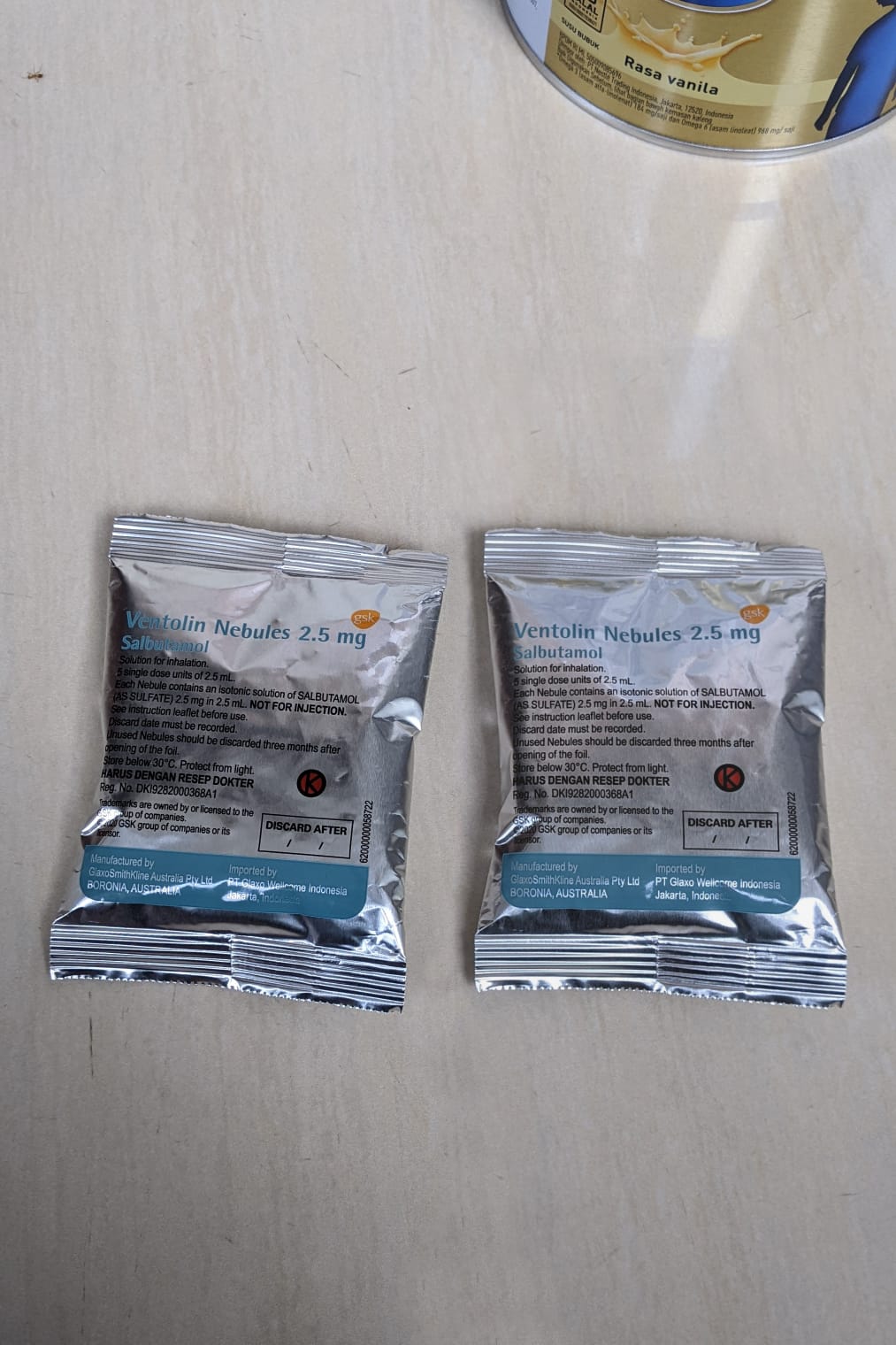 Sekarang anakku harus terapi antibiotik dan selalu di-nebu untuk mengencerkan dahaknya. Efek dari batuk dan flu menyebabkan berat badan anakku kembali turun drastis.