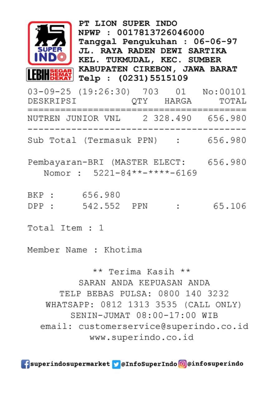 Dana digunakan untuk susu Nutren junior 800 gram Rp335.000 x 2 kaleng = Rp670.0002025-09-04 08:57:34