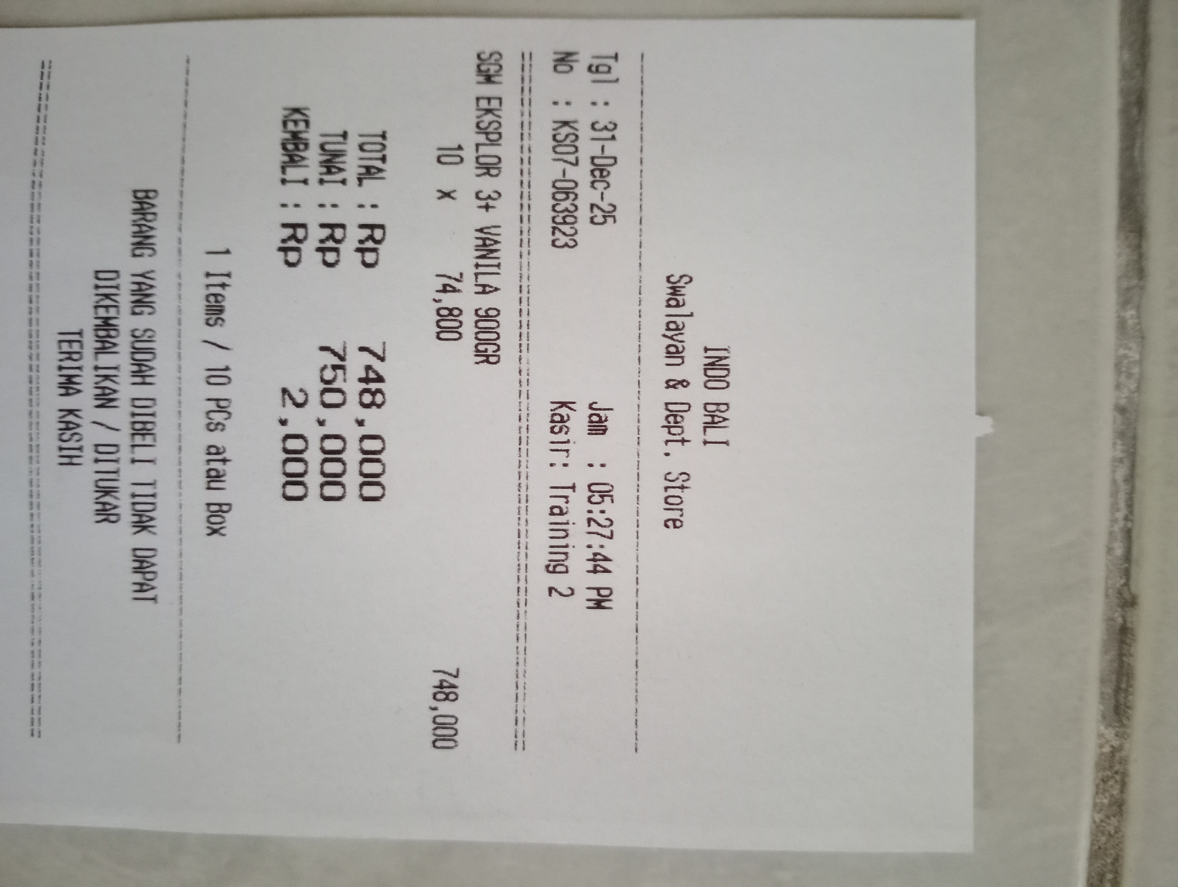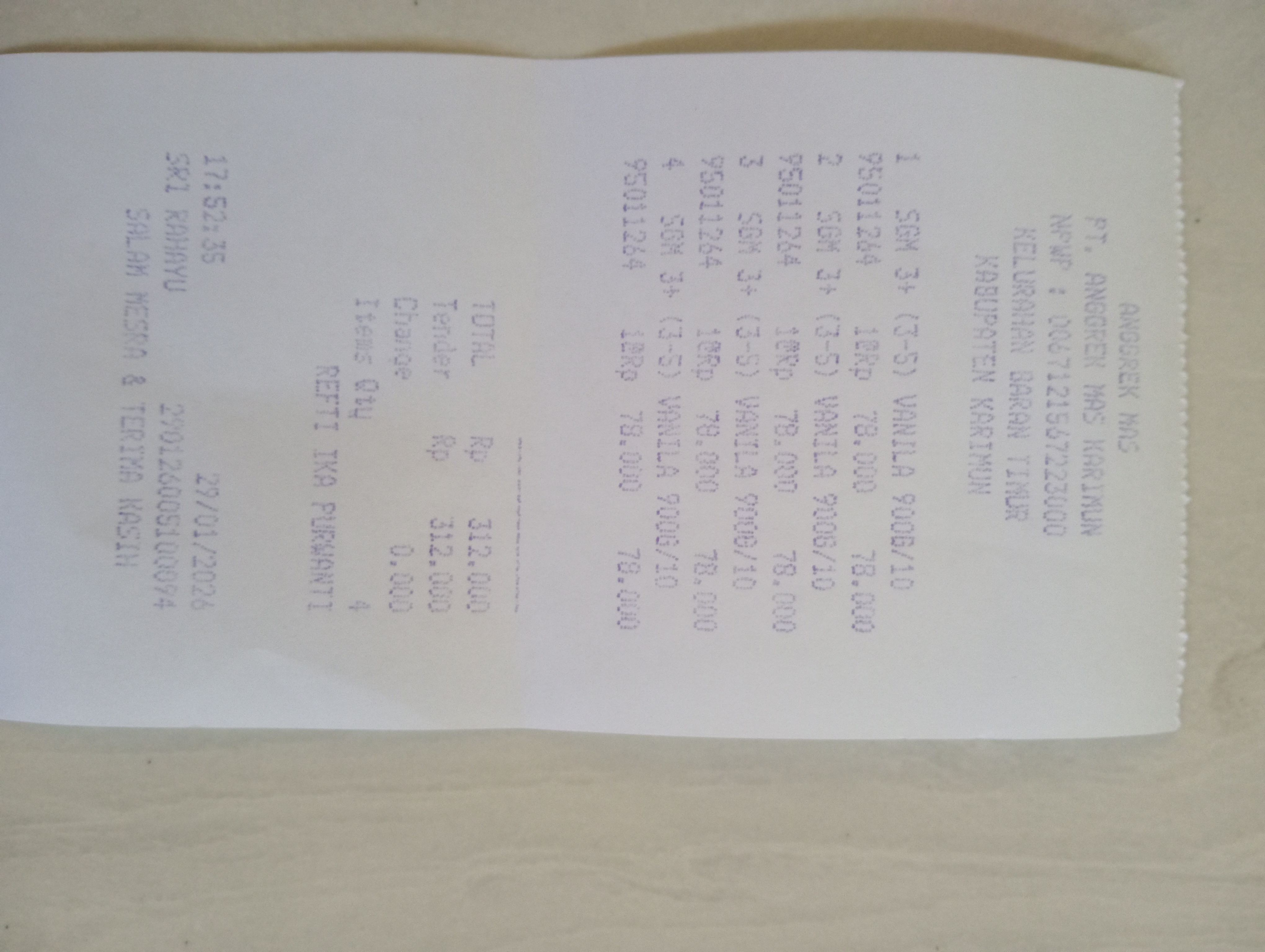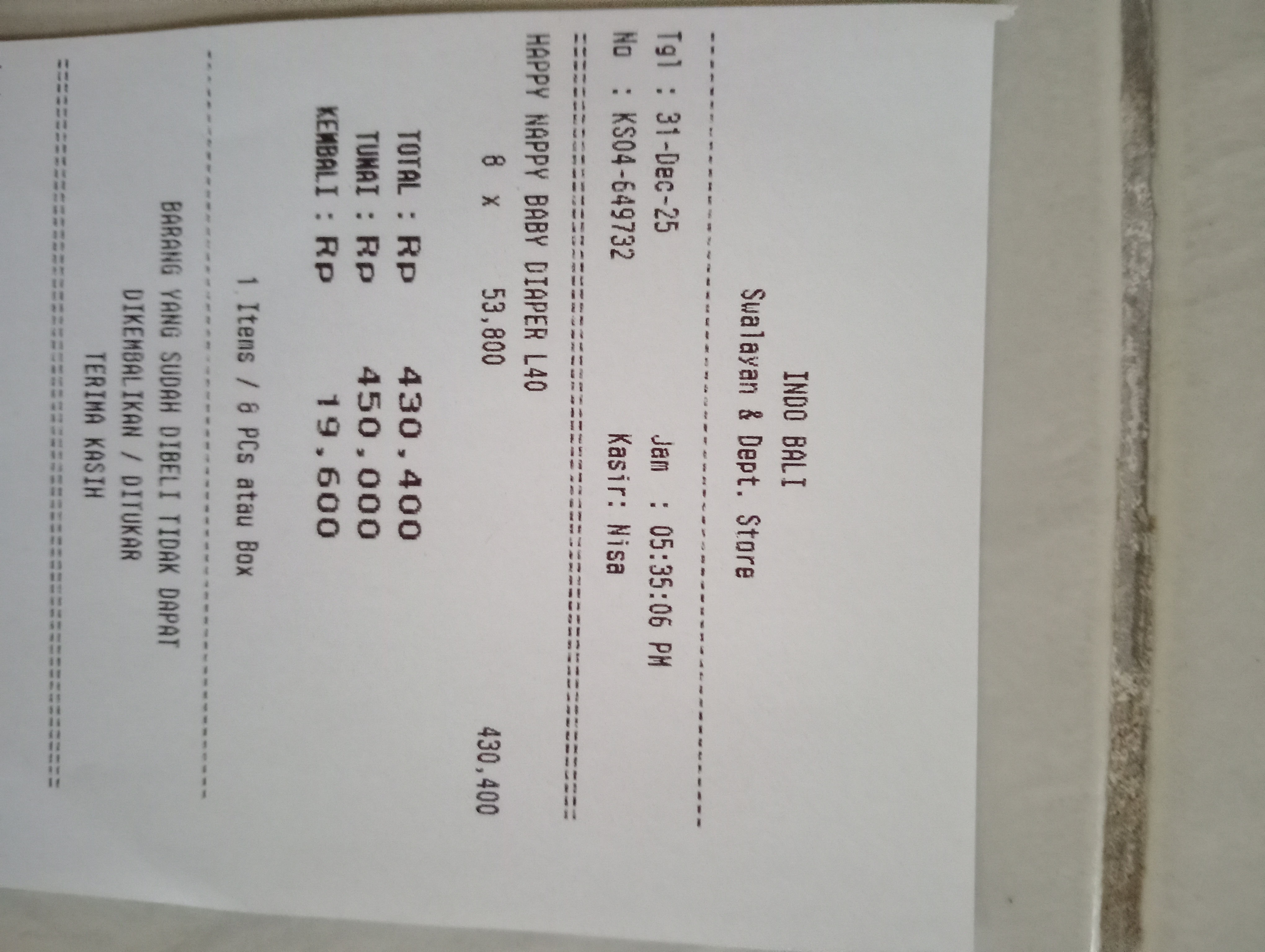 Susu SGM 1+ van 900gr bulan Desember 82.000x11 box=902.000 dan Pampers sweety M bulan Desember 52.800x9 =475.2002024-12-03 09:56:40