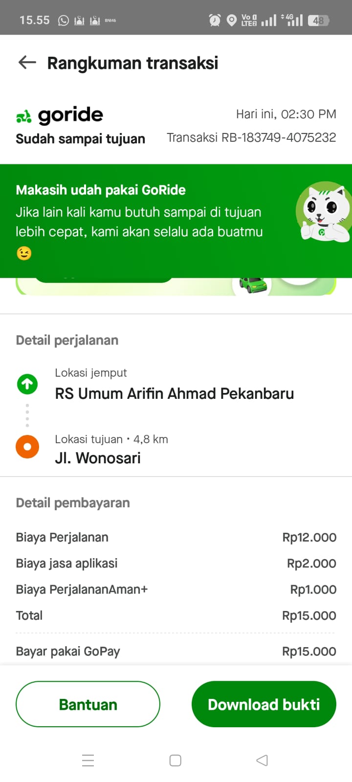 Dana digunakan untuk 1. Pampers UK dewasa Rp65.000 x 6 ball= Rp 390.000 2. Underpead Rp50.000 x 6pcs= Rp300.000 3. Tissu Rp11.000 x 3 pcs= Rp. 33.000 4. Biaya makan selama rawat inap Rp1.000.0002025-07-29 13:37:00