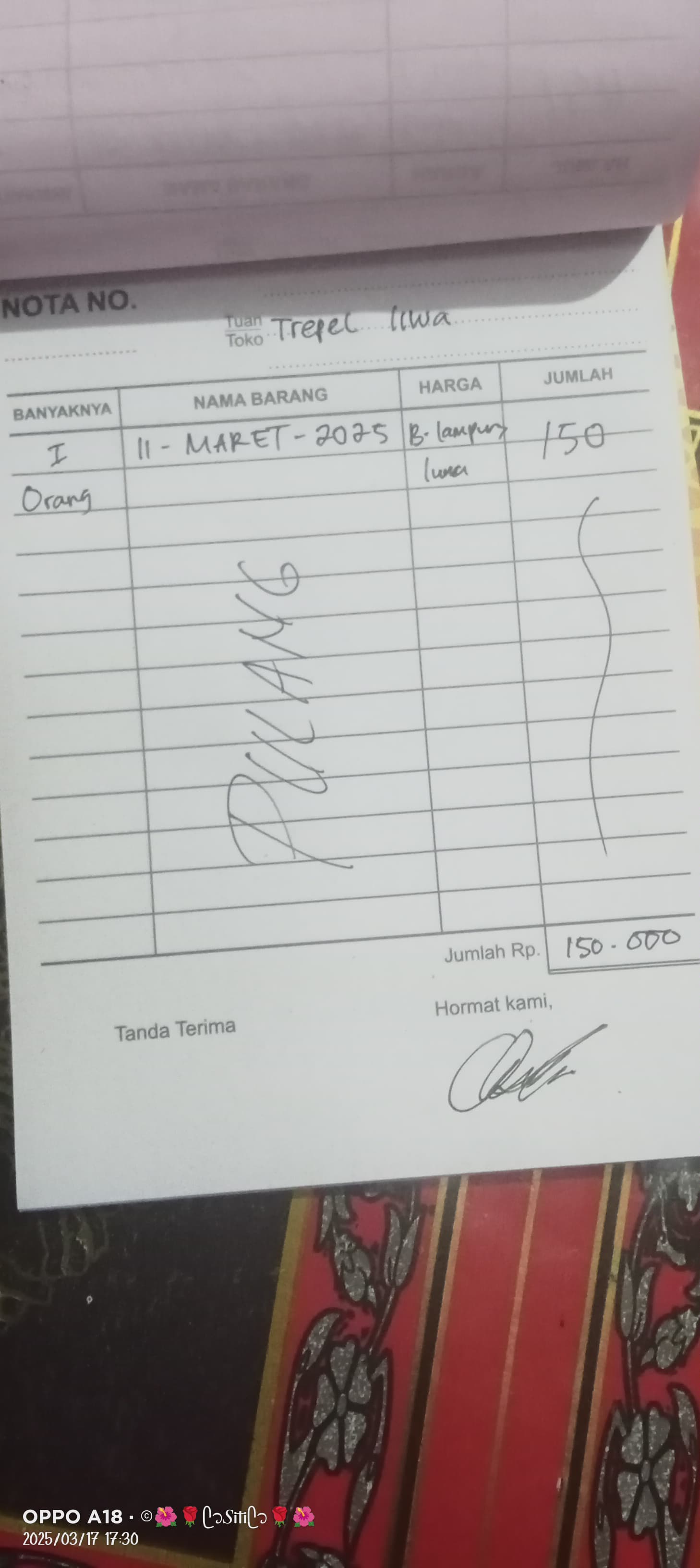 Dana digunakan untuk 1. Biaya transportasi dari liwa ke RS urip sumoharjo PP Rp300.000 2. Biaya konsumsi konsumsi kontrol Rp200.000 3. Obat silnadefin Rp350.0002025-04-09 09:19:02