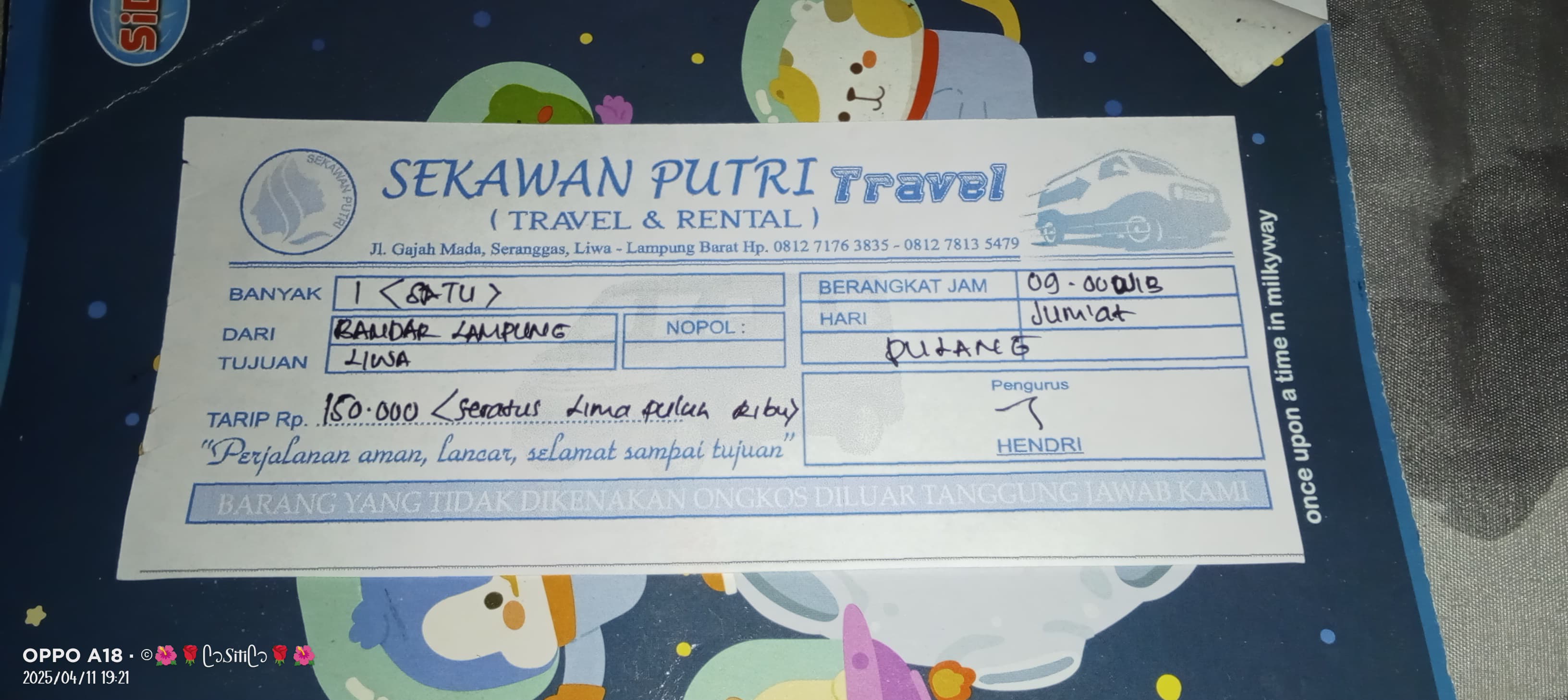 Dana digunakan untuk 1. Biaya travel pp liwa ke RS urip sumoharjo bandar lampung Rp300,000 2. Biaya konsumsi kontrol Rp247.5002025-03-10 15:27:43