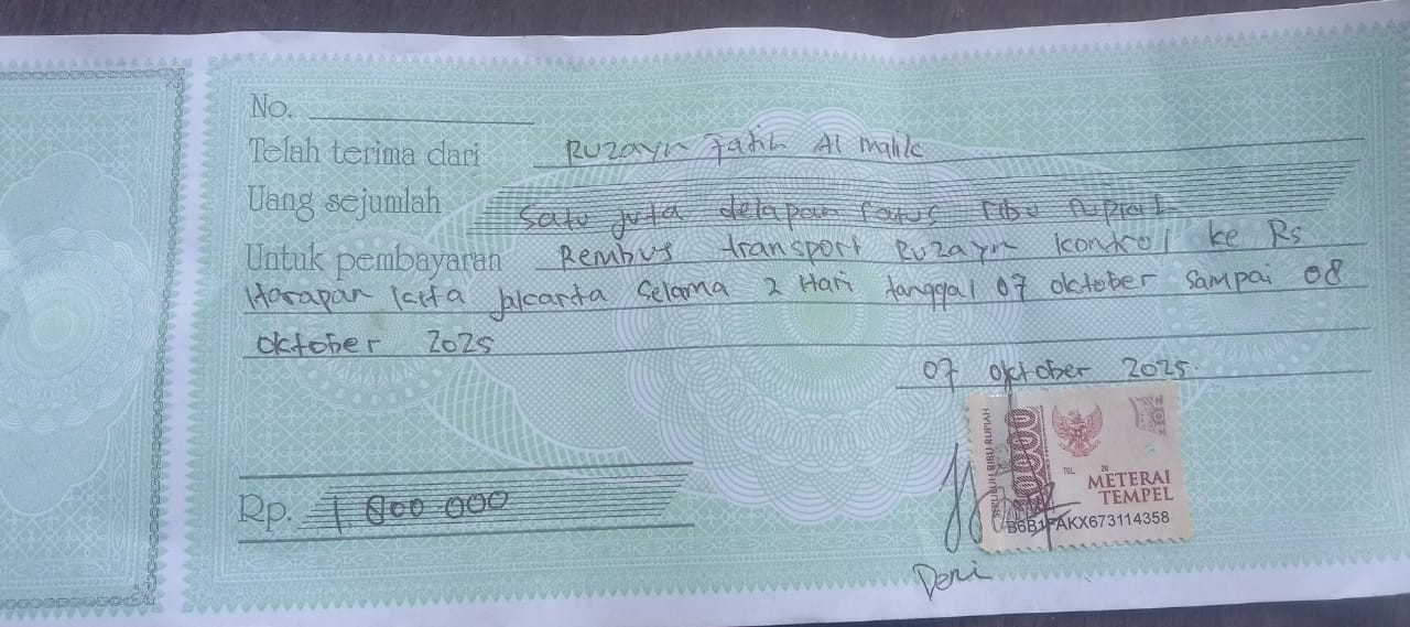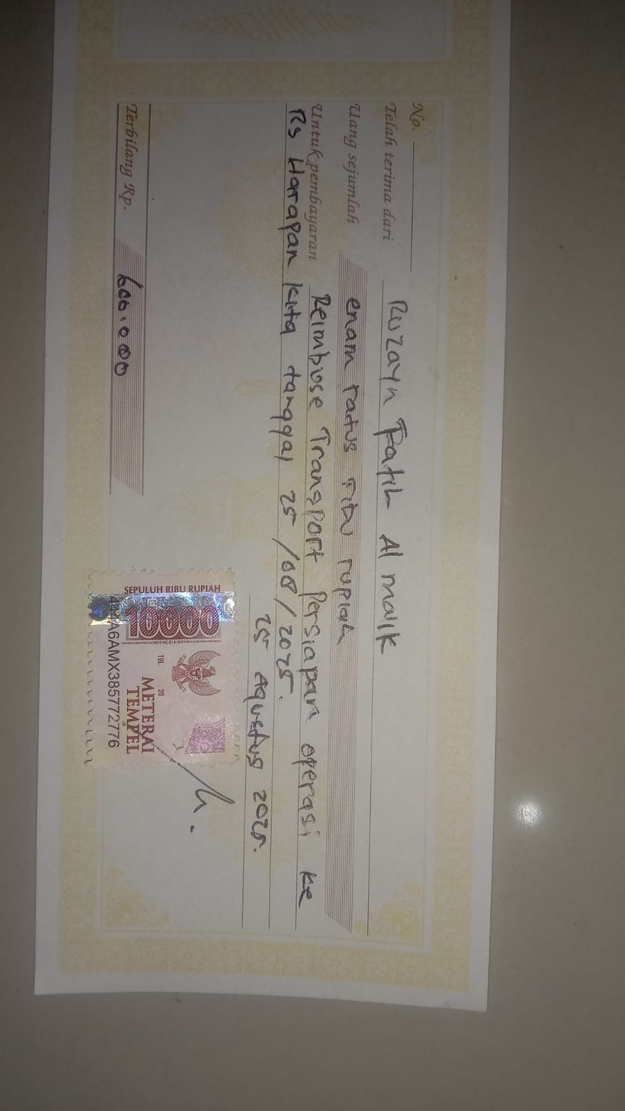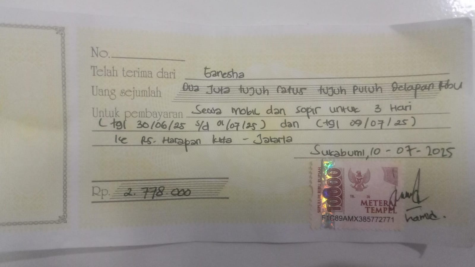 Dana digunakan untuk Transportasi dari Sukabumi ke RS Harapan Kita Rp600.0002024-09-17 16:48:25