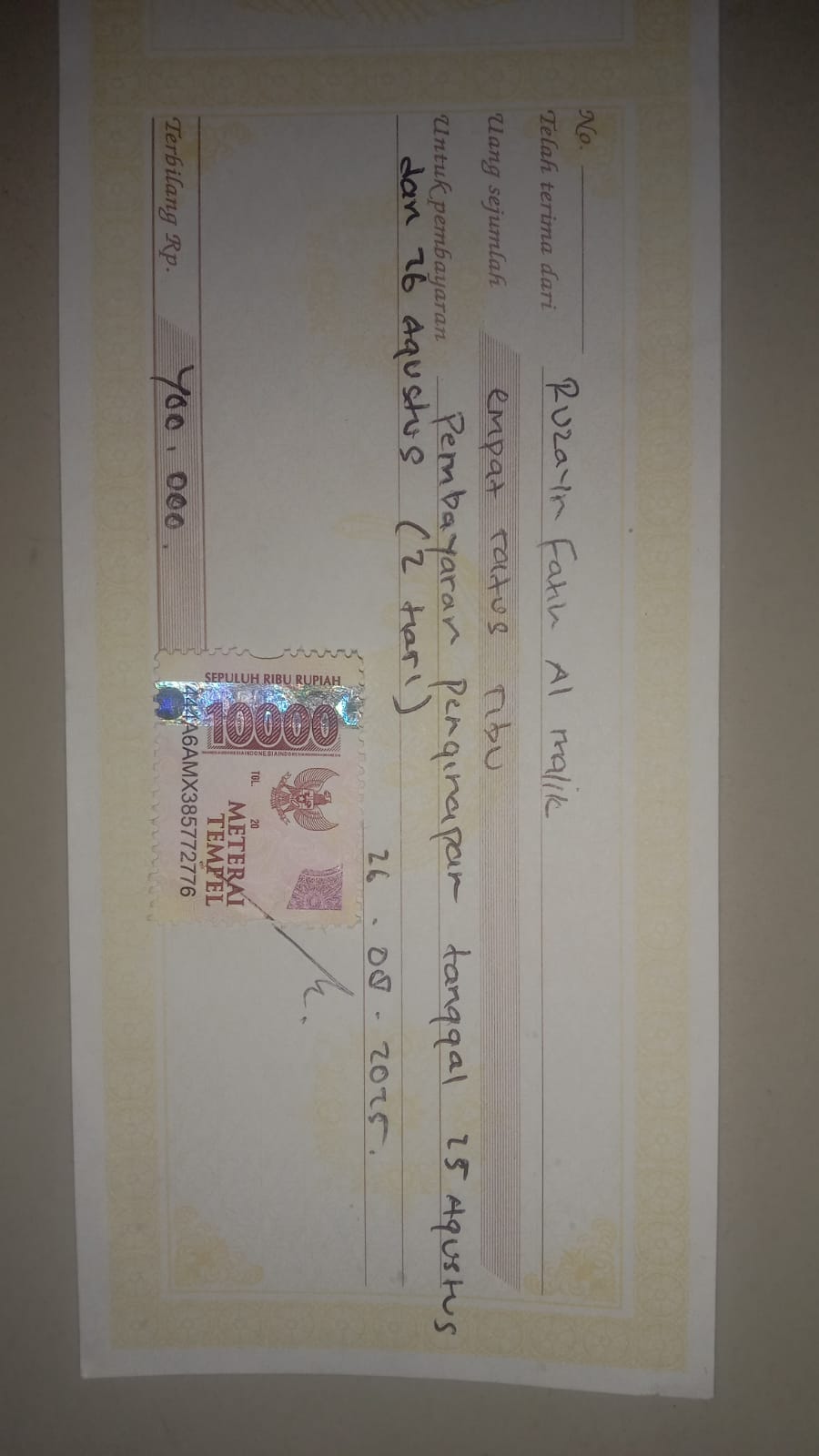 Dana digunakan untuk 1. Pediacompleted 850 gr Rp430.000 x 6= Rp2.580.000 2. Pampers Rp57.000 x 4bal = Rp228.000
