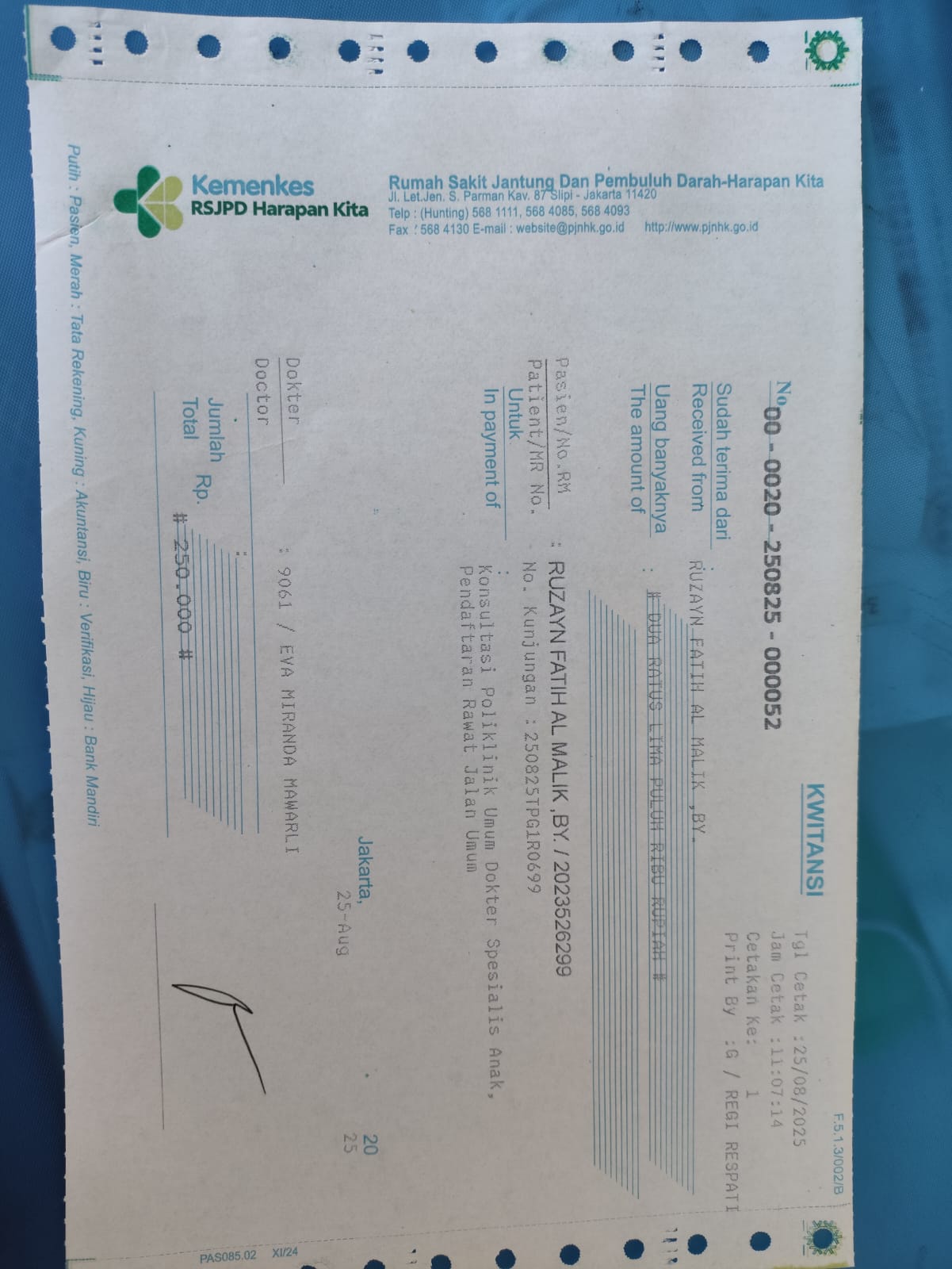 Minggu ini, insyaallah Ruzayn akan kembali kontrol ke RS Jantung Harapan Kita, Jakarta. Mohon doanya semoga pemeriksaan berjalan lancar, dan kondisi Ruzayn tetap stabil agar bisa segera menjalani operasi.